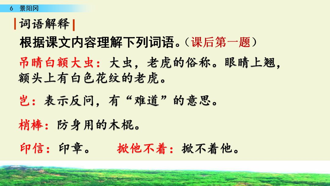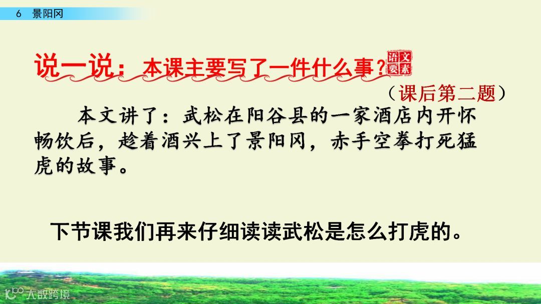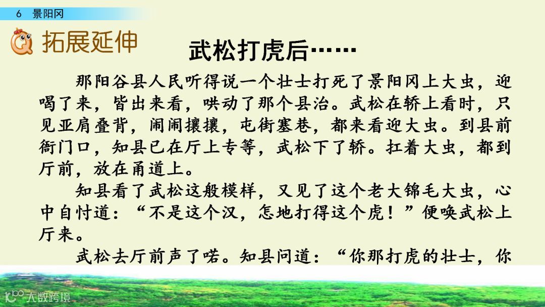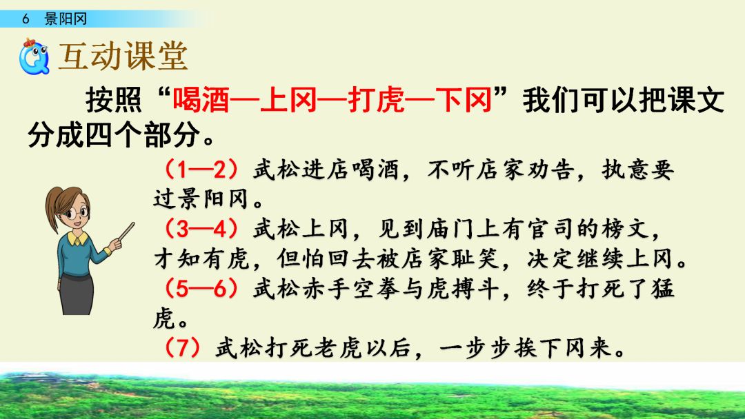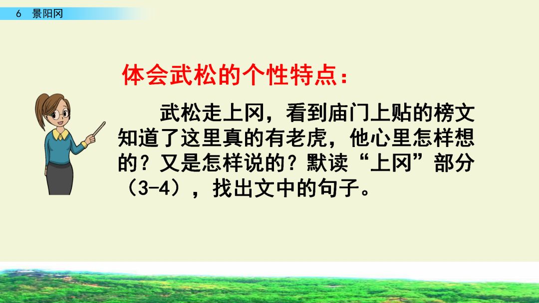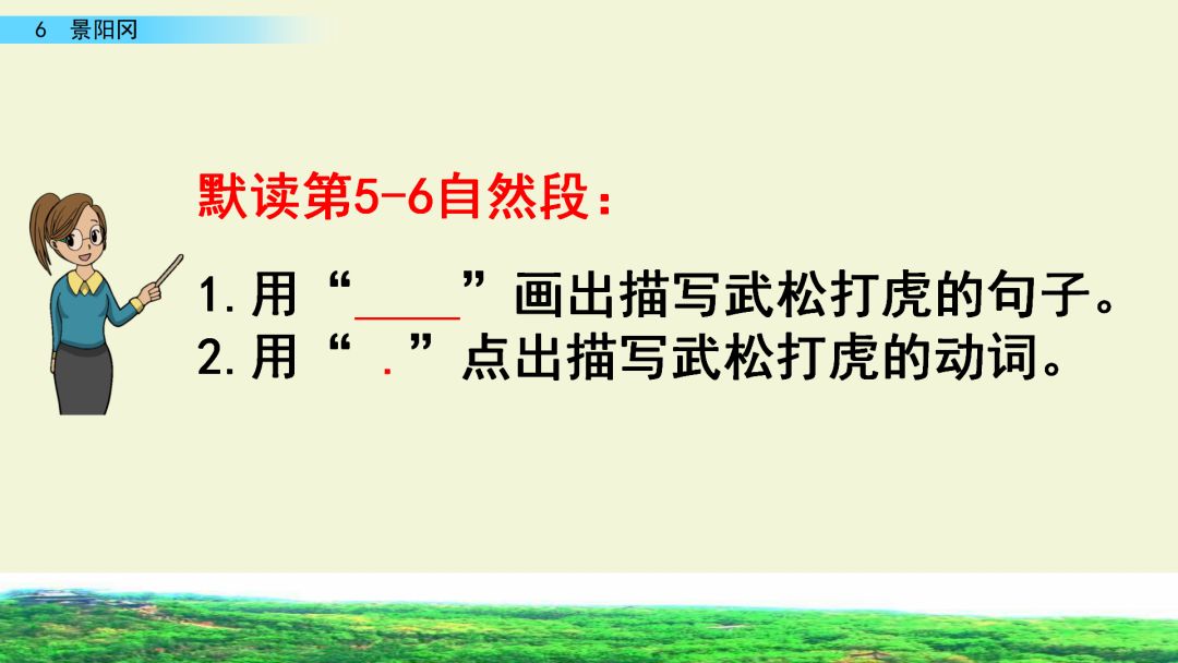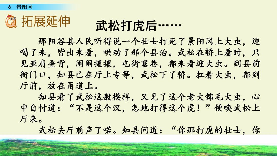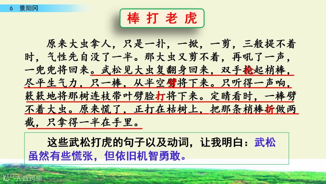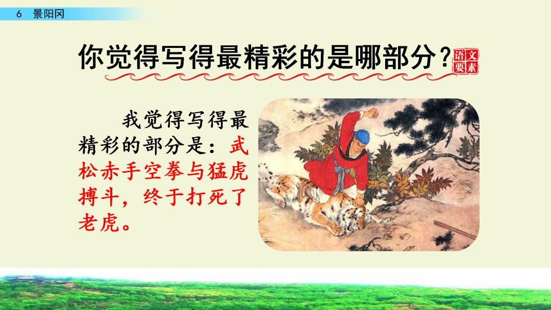 3、用自己的话详细讲述武松打虎的部分,可以加上适当的语气、表情和动作。
