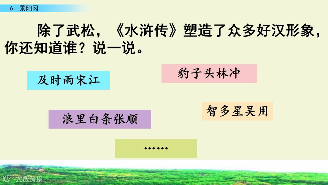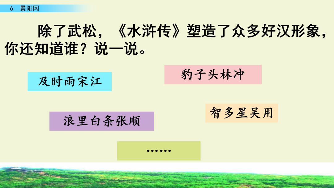6.这段话选自古典文学名著《________》,它的作者是________,你还知道这部名著中的哪些人物(举四个)________、________、________、________。