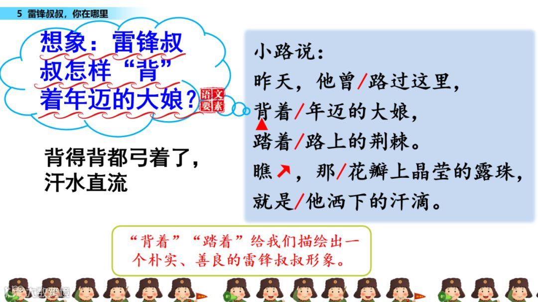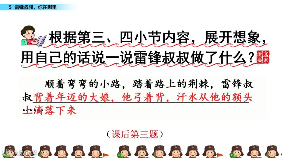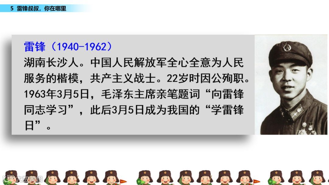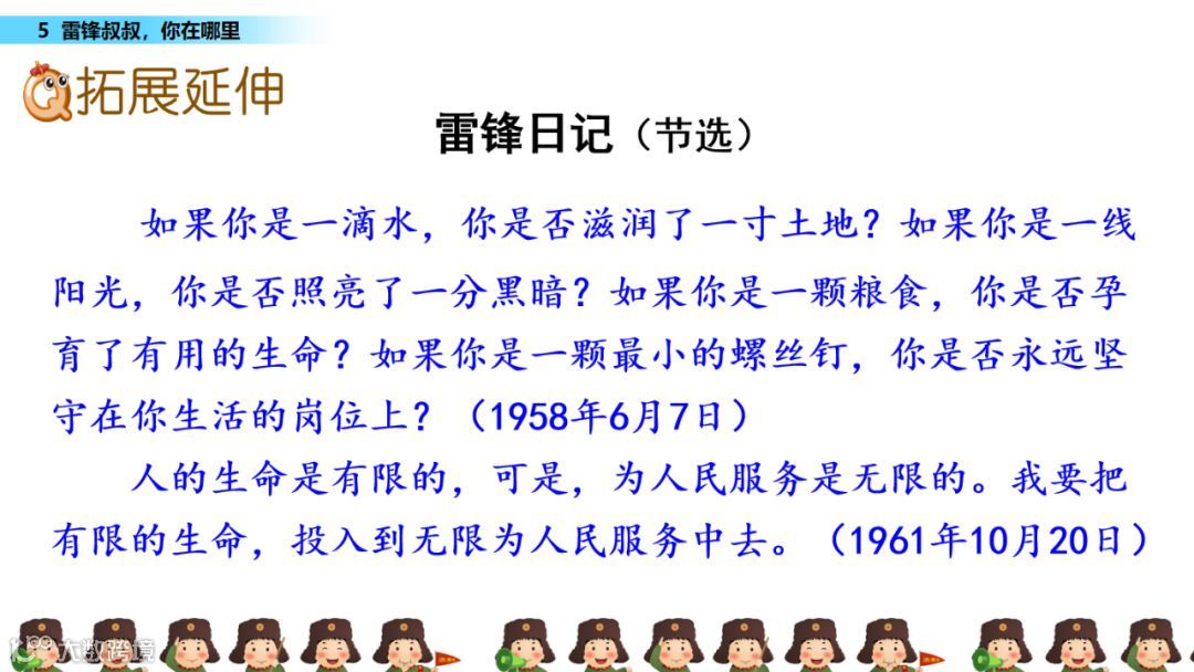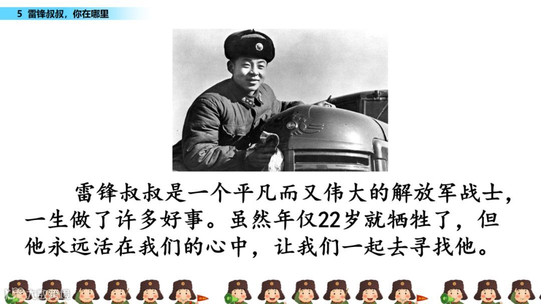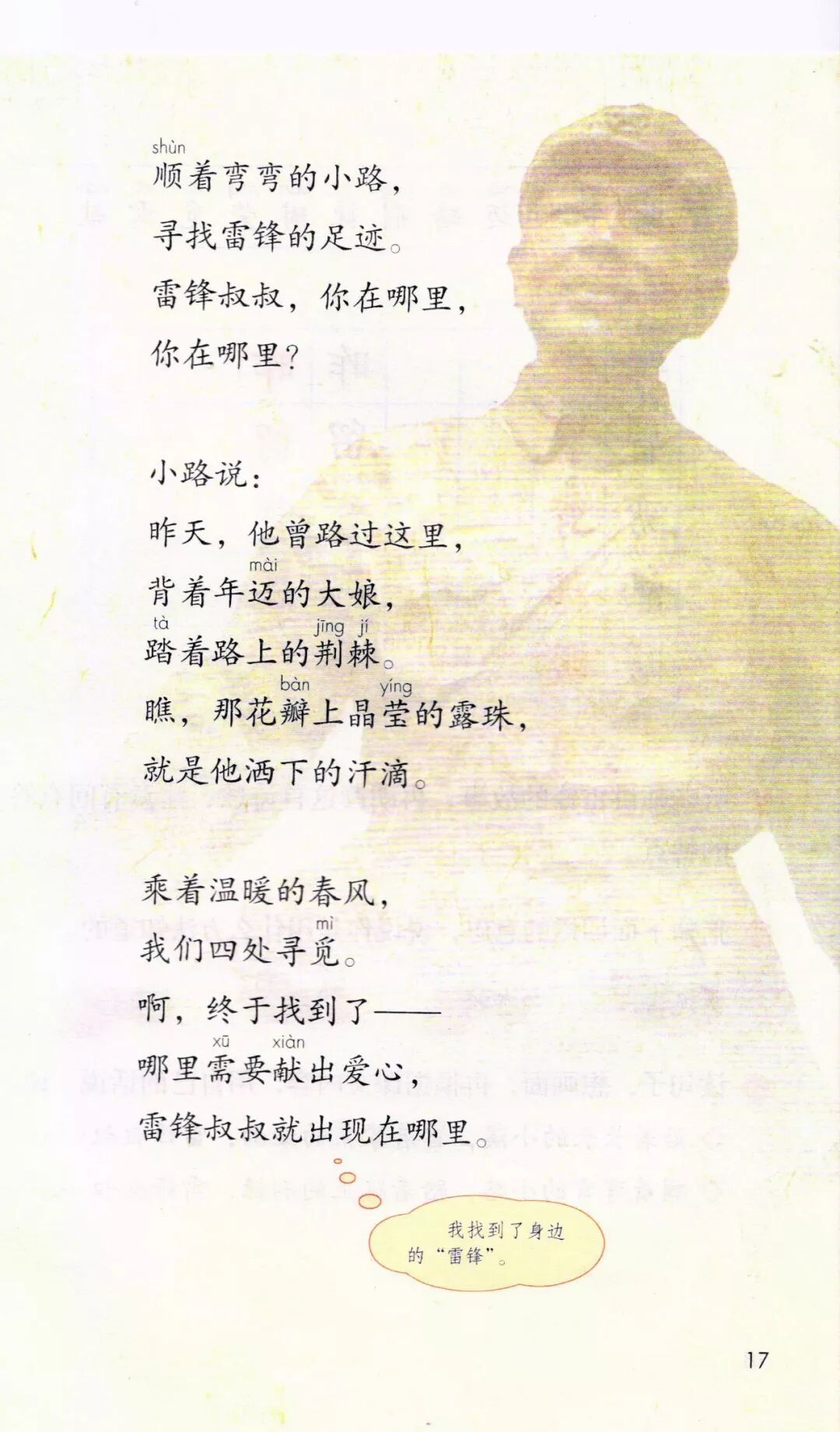 ◇顺着弯弯的小路,踏着路上的荆棘,雷锋叔叔……