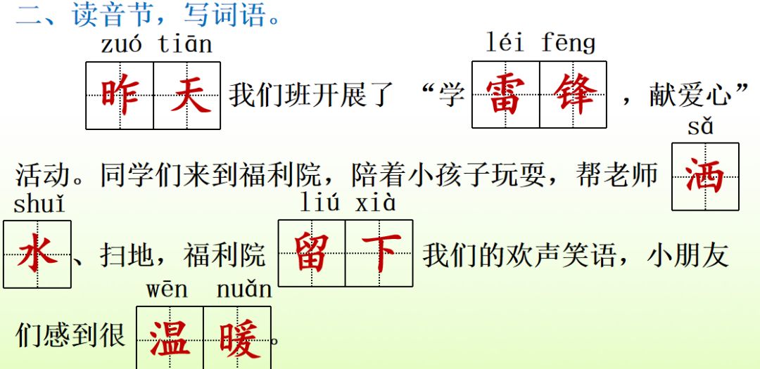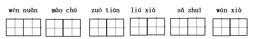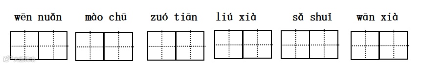 二、温暖 冒出 昨天 留下 洒水 弯下