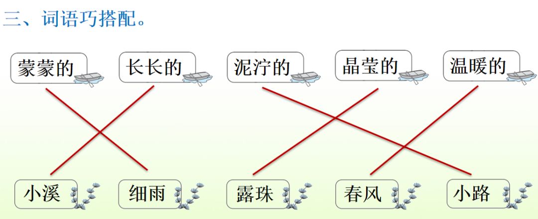 蒙蒙的( 细雨 ) 温暖的( 春风 )
