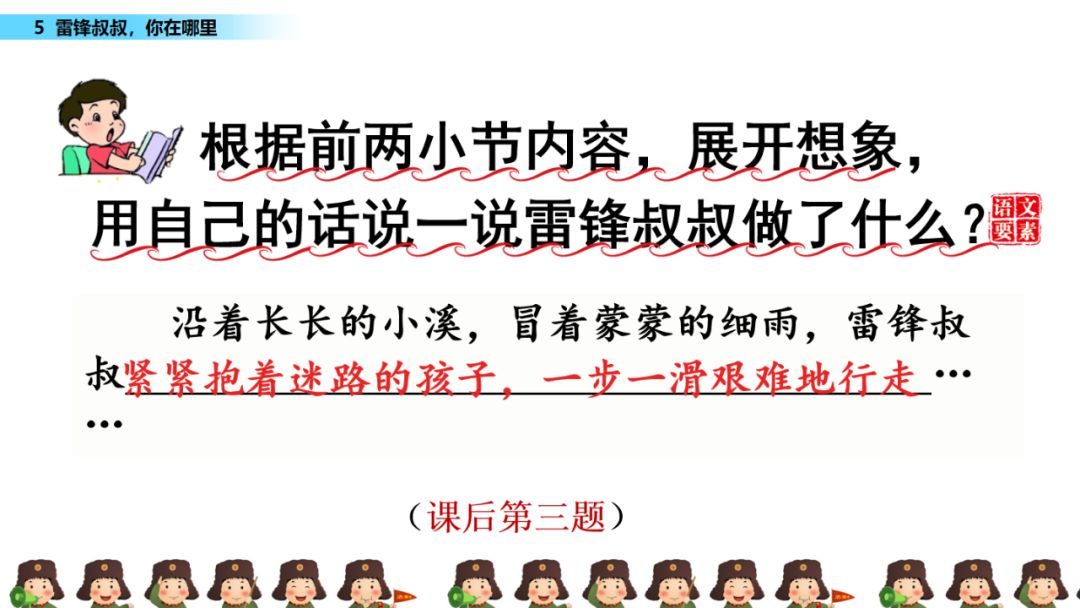 ◇沿着长长的小溪,冒着蒙蒙的细雨,雷锋叔叔……
