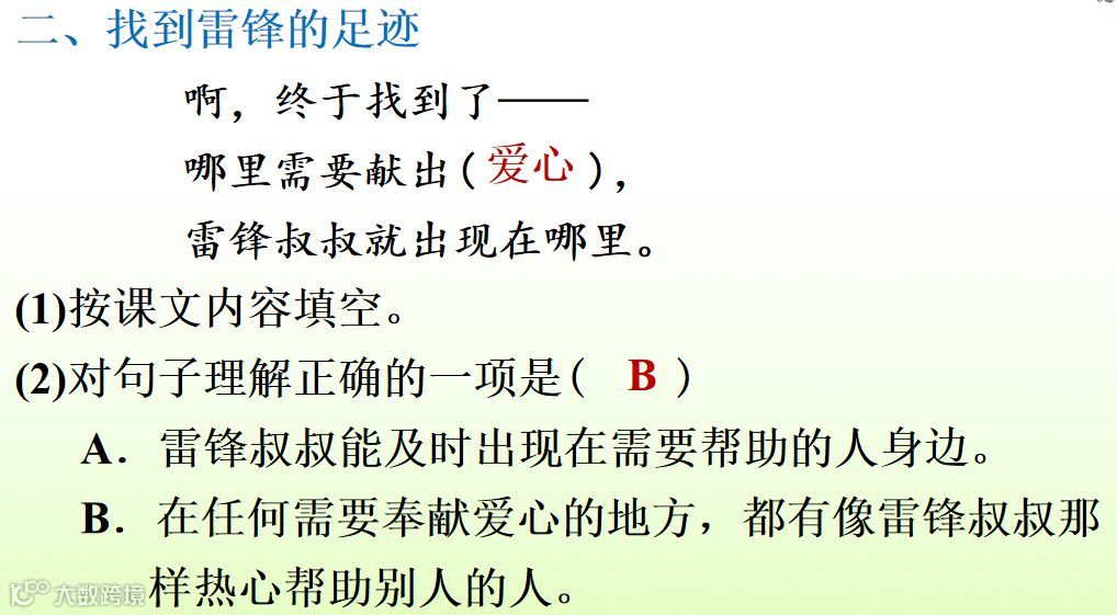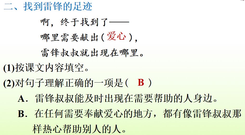 C.雷锋叔叔时时处处都想着别人,他把爱心洒遍了祖国各地。