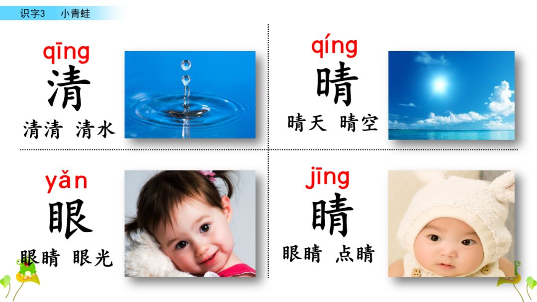 睛 jīng(眼睛) 眼 yǎn(眼光)