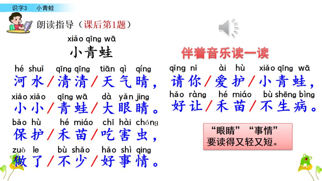 保护禾苗 爱护青蛙 吃(捉)害虫