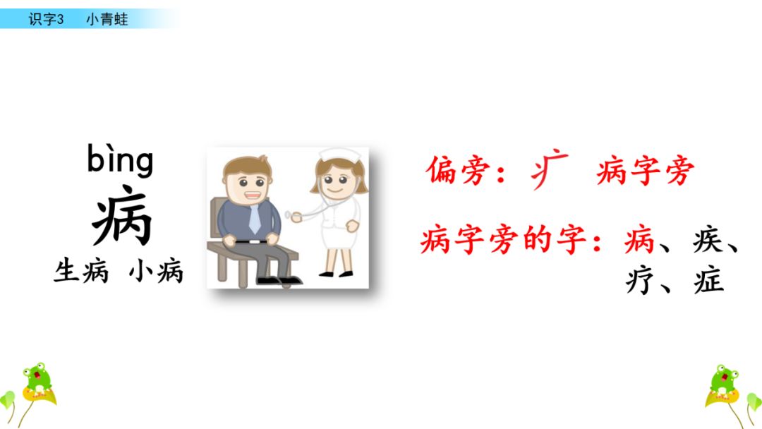 (疒)病字旁的字一般表示与疾病有关。如病、痛、疼。
