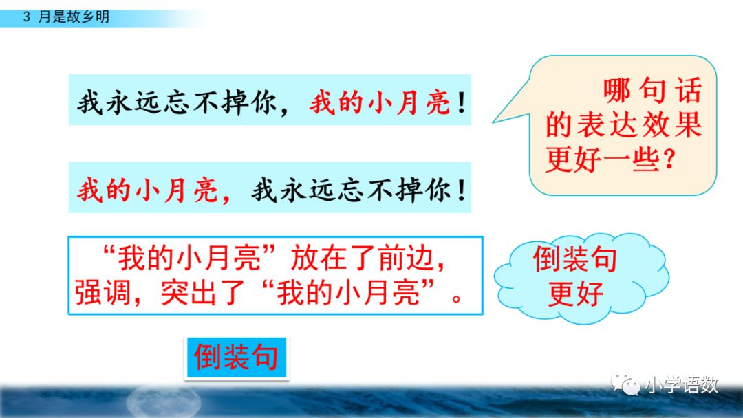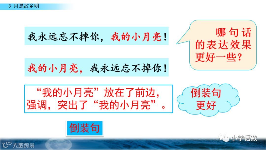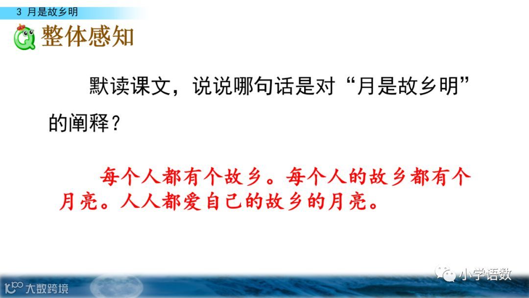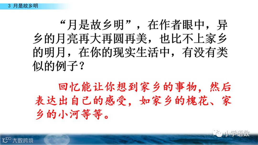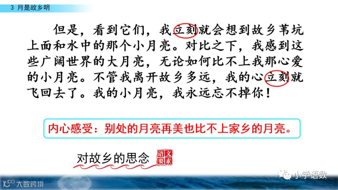 (2)拿世界各地见到的月亮与故乡的月亮作对比,表达对故乡的思念。
