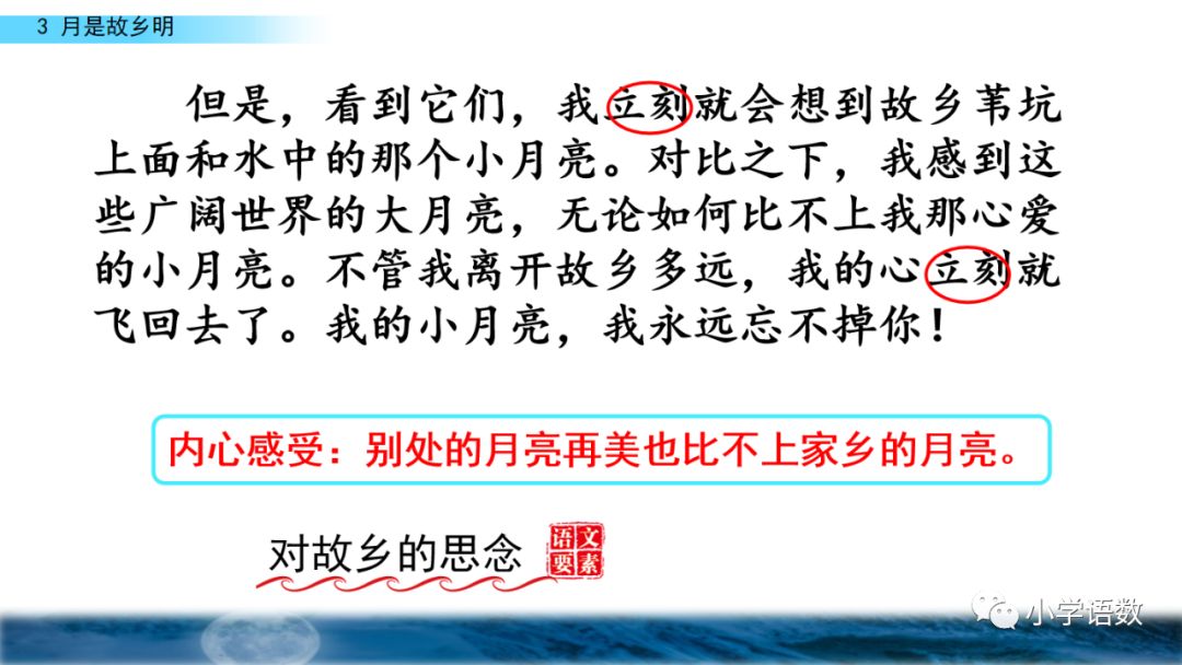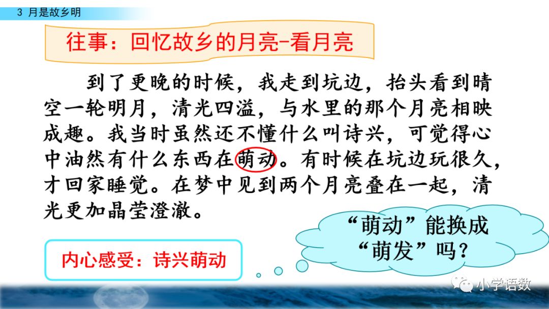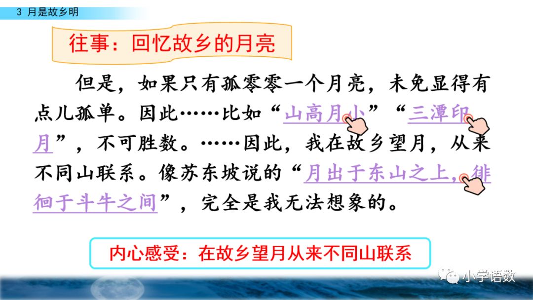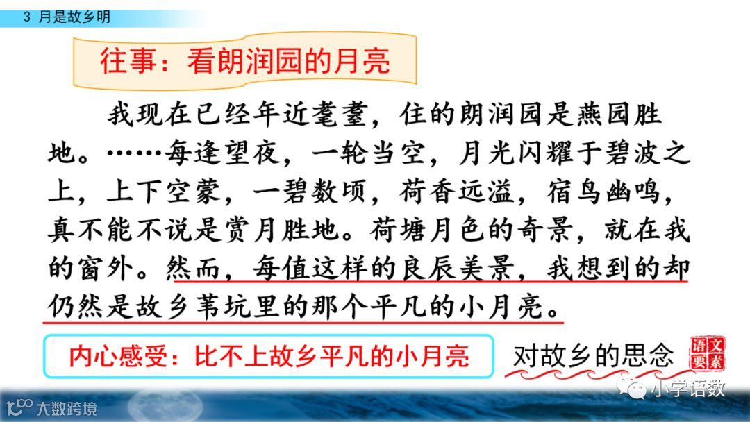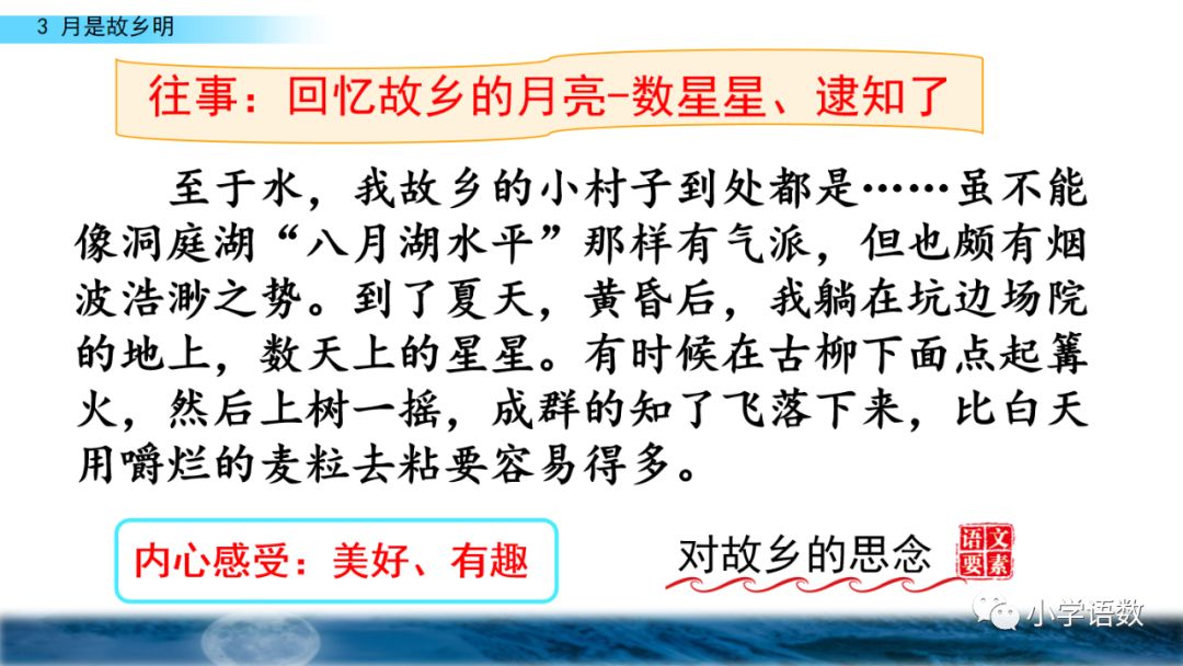 4. 这些童年趣事也是围绕着月亮来写的,捉知了、看月亮、做梦都跟月亮有关,不是多余,反而更能表达出对故乡的思念。