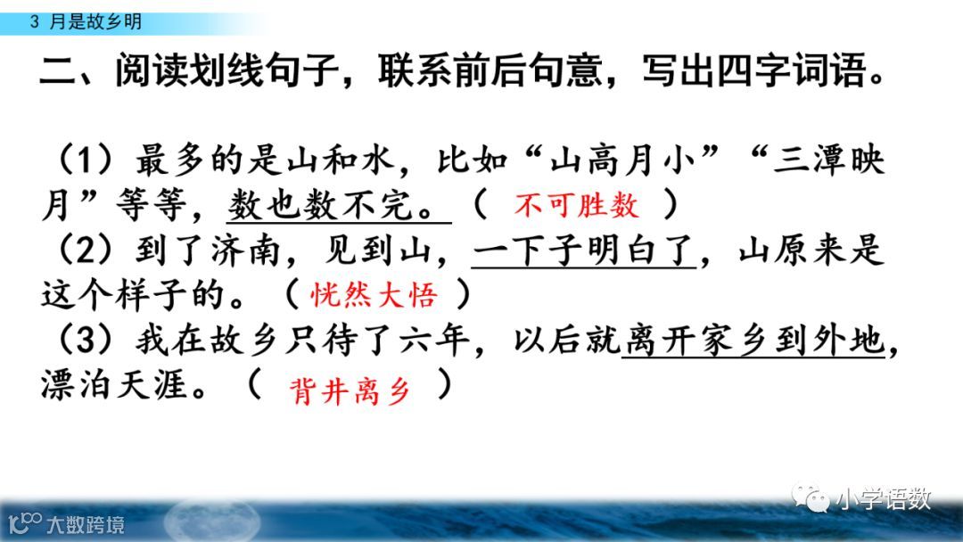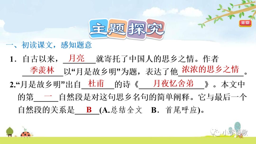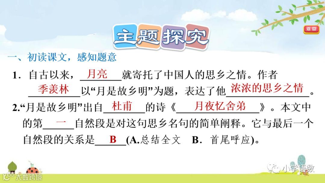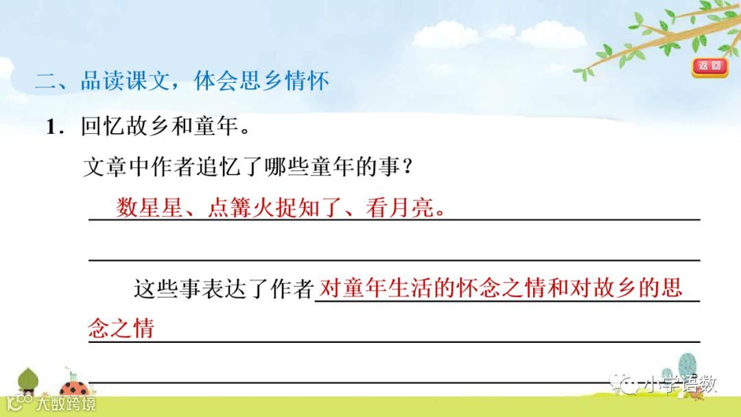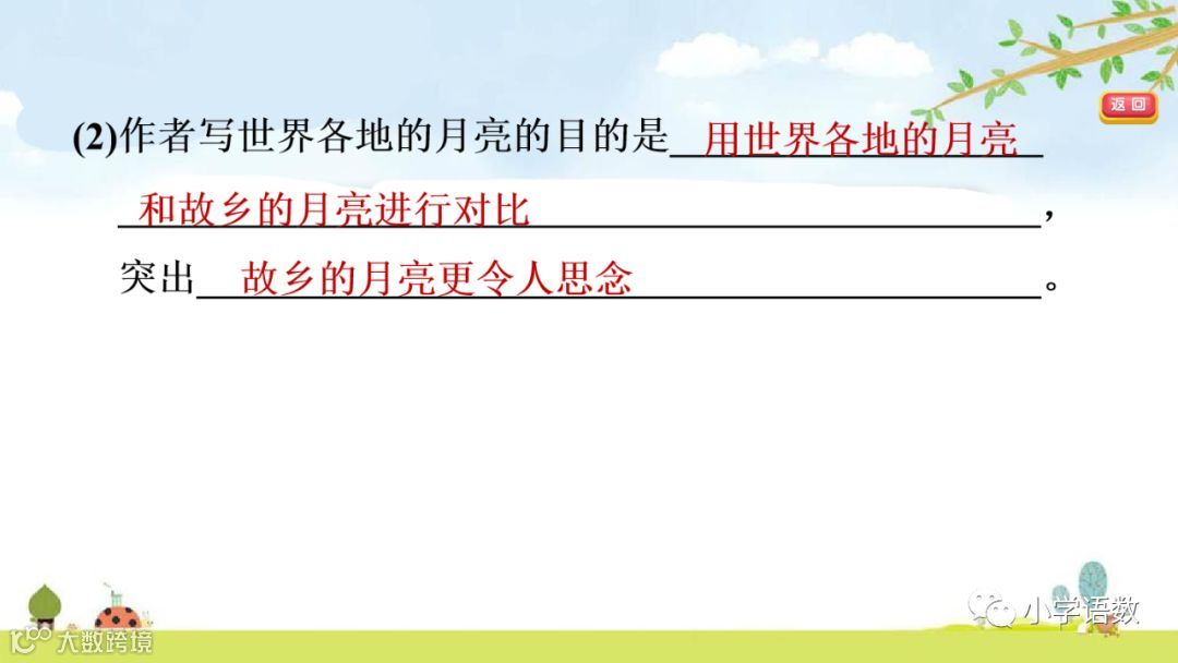 答:(1)通过对故乡的月亮及月下趣事的描述,表达了对故乡的思念之情。