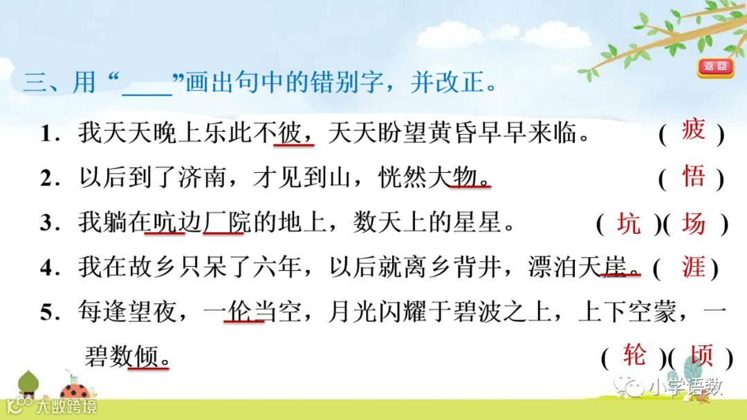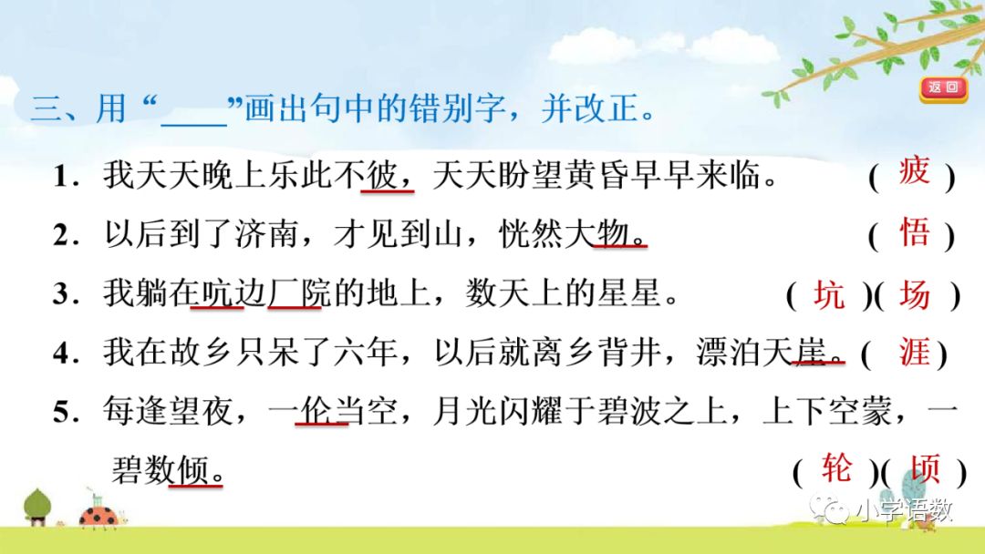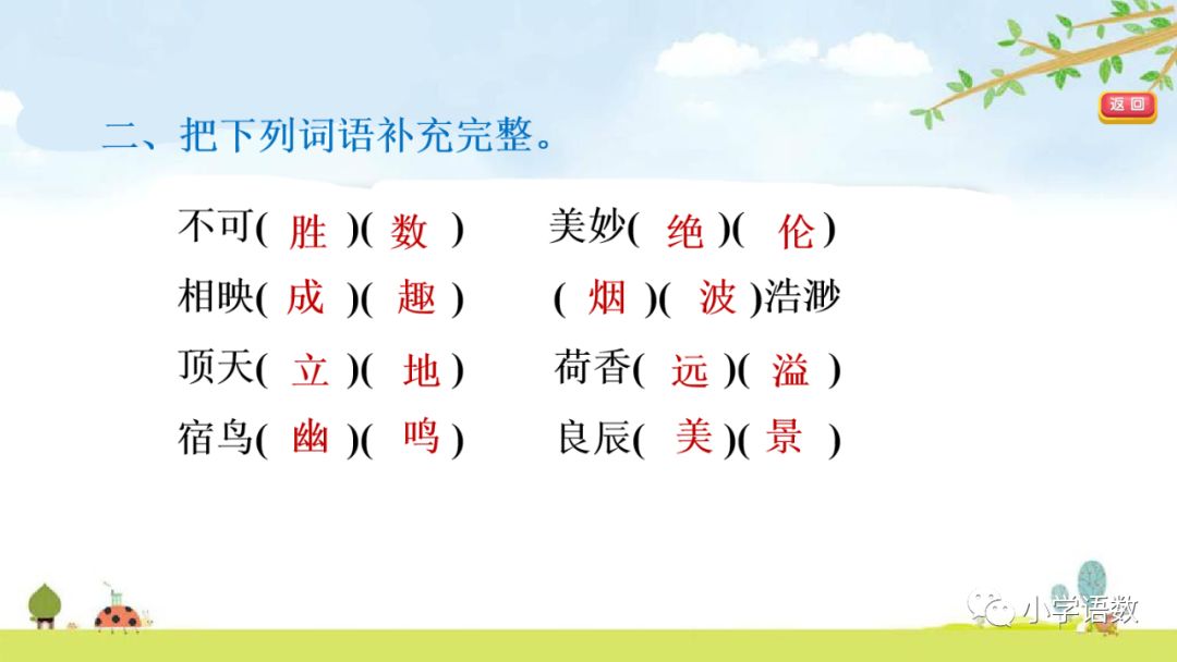二、1.清光四溢 2.离乡背井 3.碧波万顷