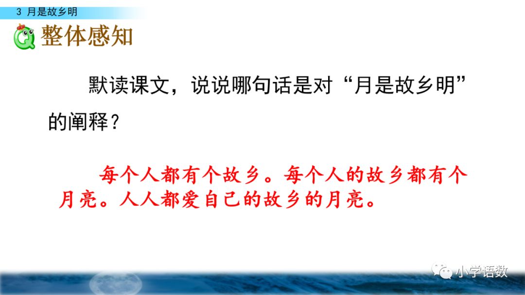 1、每个人都有个故乡,每个人的故乡都有个月亮。人人都爱自己故乡的月亮。