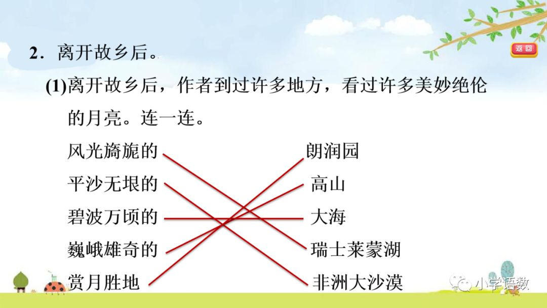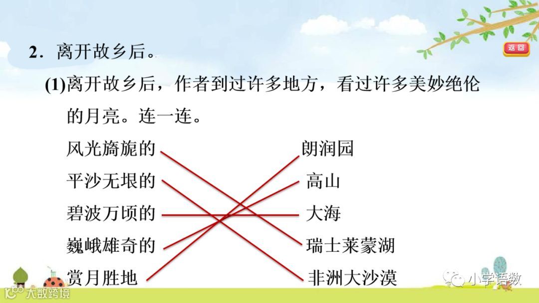 答:这些童年趣事都是围绕着月亮来写的,数星星、捉知了、赏月等都跟月亮有关,通过写这些铭刻在作者记忆中的童年趣事,表达出他对故乡的眷恋、思念之情。
