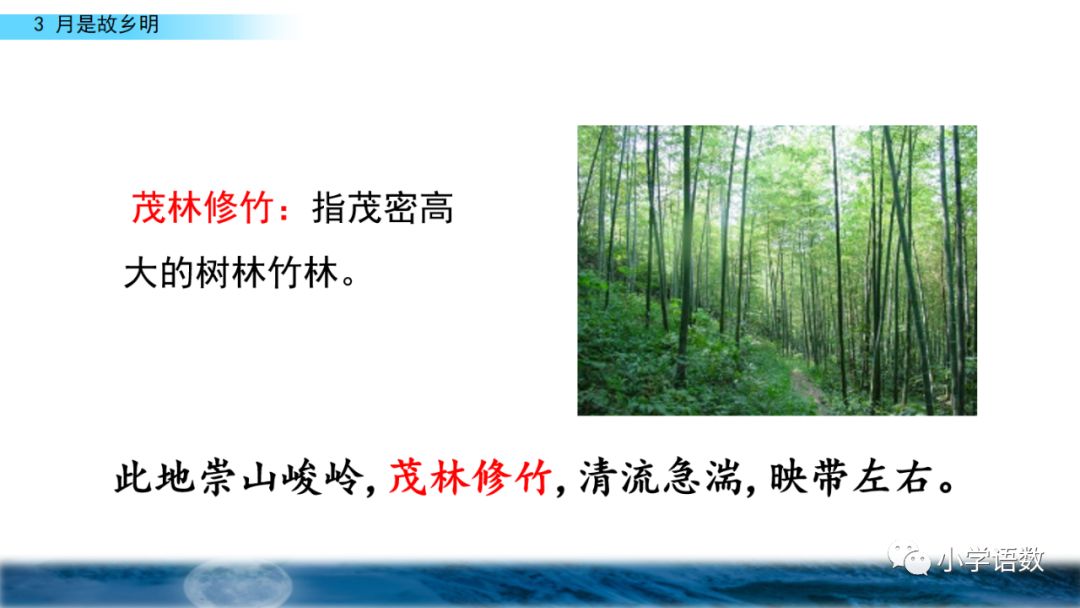2、 以后到了济南,才见到山,恍然大悟:山原来是这个样子啊!因此,我在故乡望月,从来不同山联系。像苏东坡说的“月出于东山之上,徘徊于斗牛之间”,完全是我无法想象的。