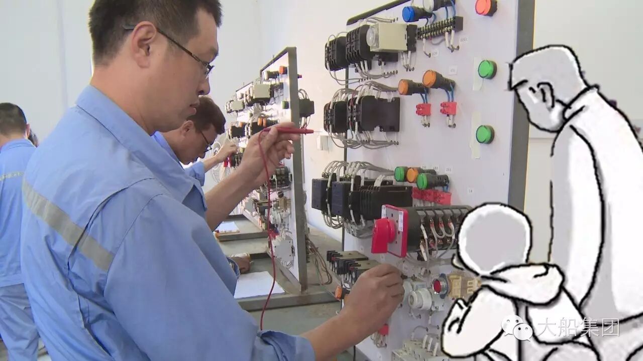 “孩子,叔叔们在做电工技能的考核呢。在船上,我们有很多工作都涉及到带电作业。”