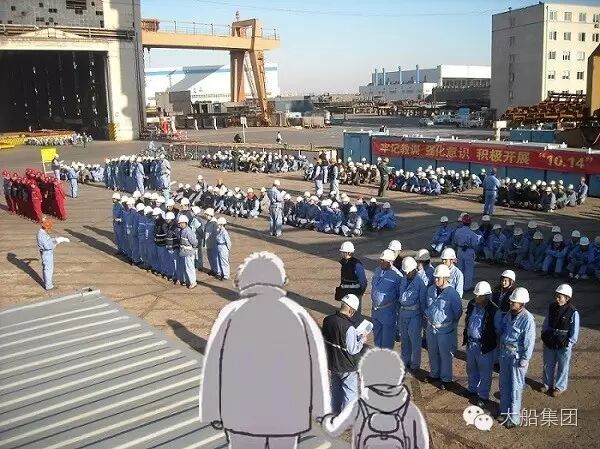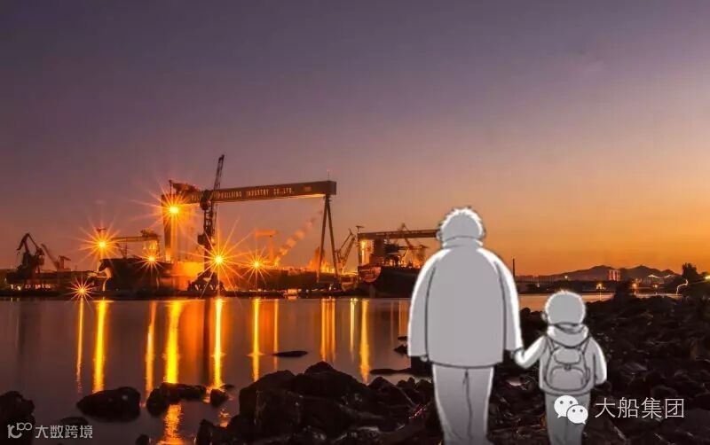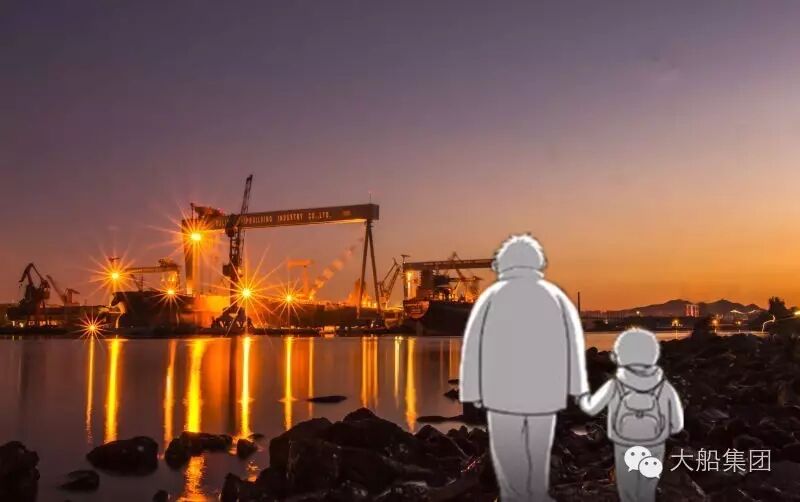一对父子走进大船集团的厂区中