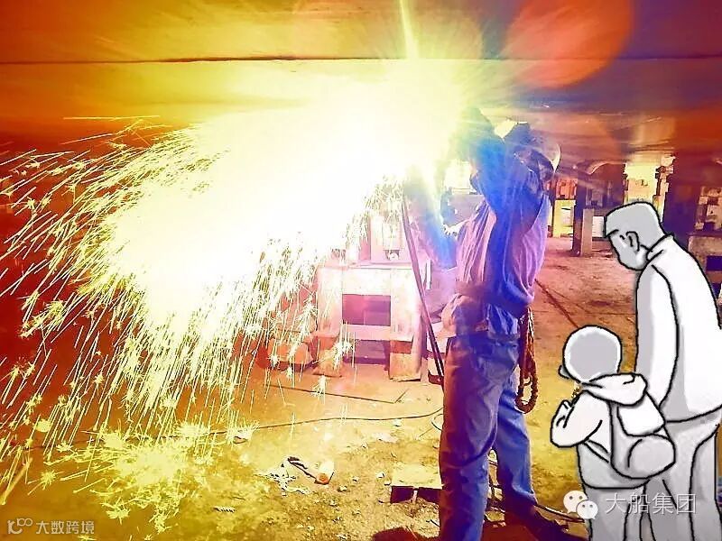 “爸爸,你看这里的火星好刺眼啊!”
