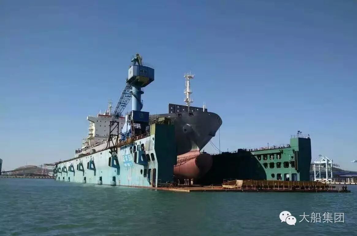 近日,大船船务公司承接的第一艘续建船,为新加坡太平船务(私人)有限公司续建的2000箱集装箱船由原STX大连船厂水平船台成功下水并漂浮靠泊至船务公司码头。