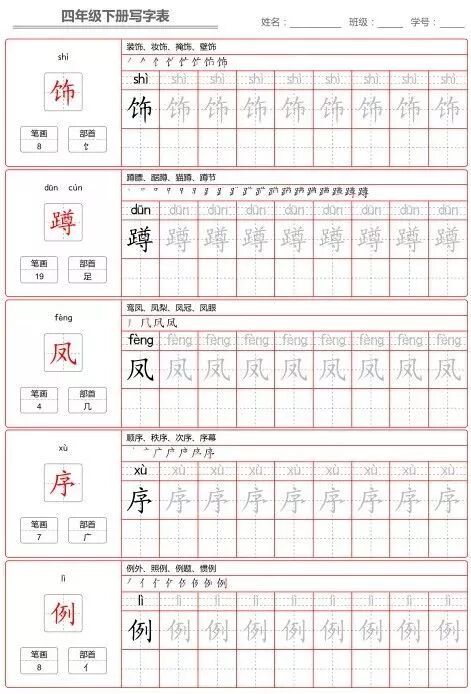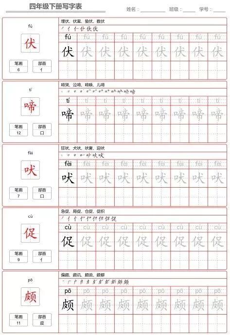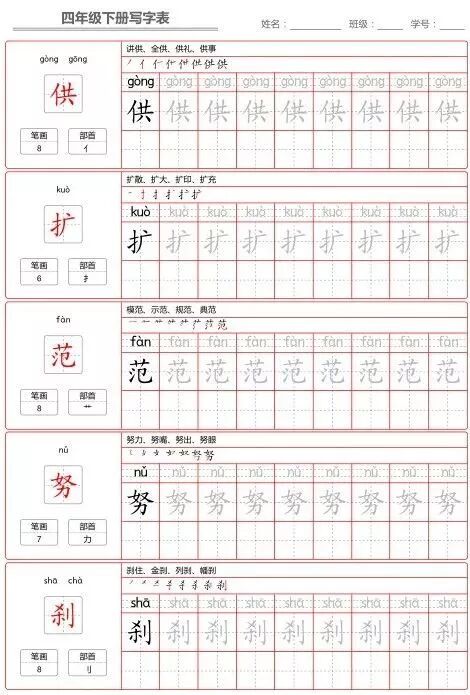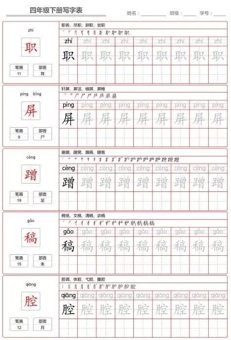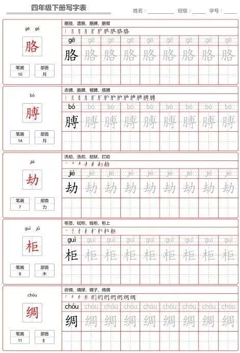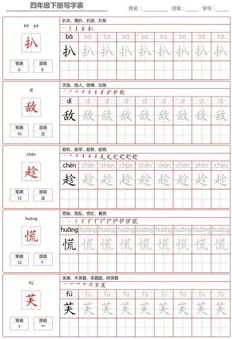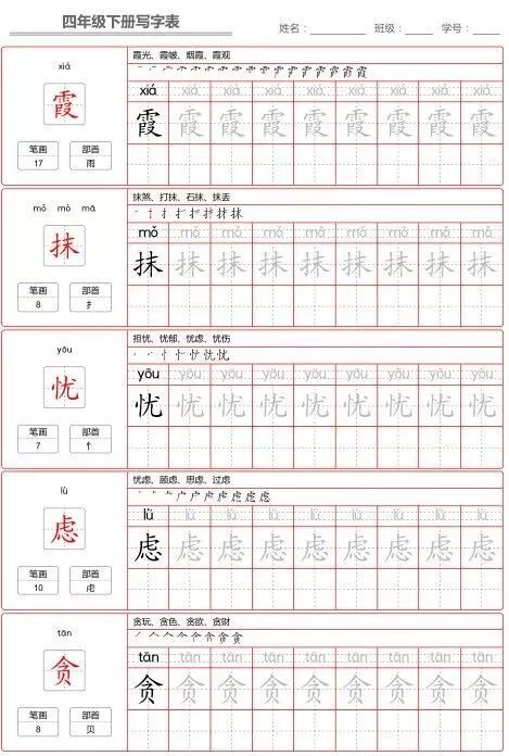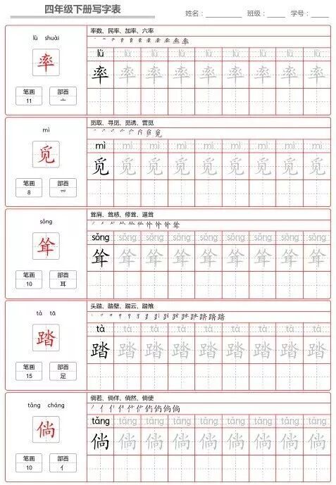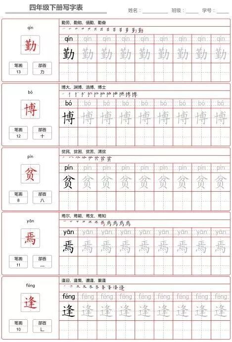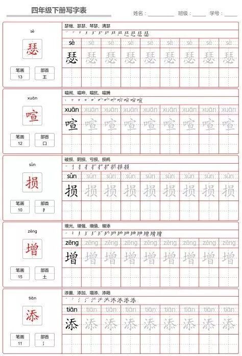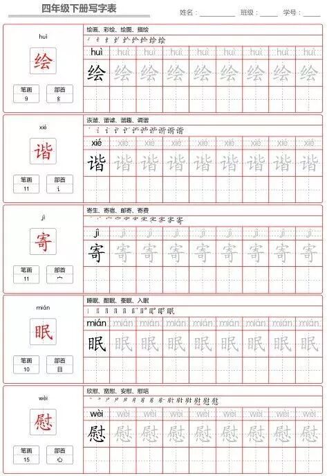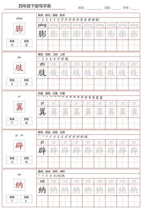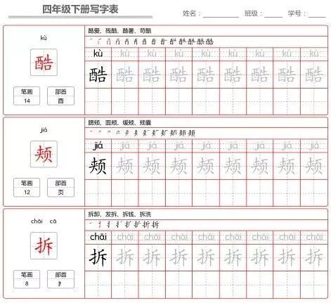 同步字帖┃部编版四年级语文下册:写字表练字贴
