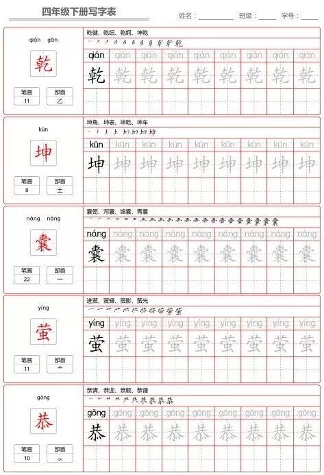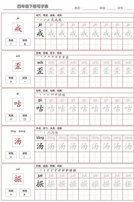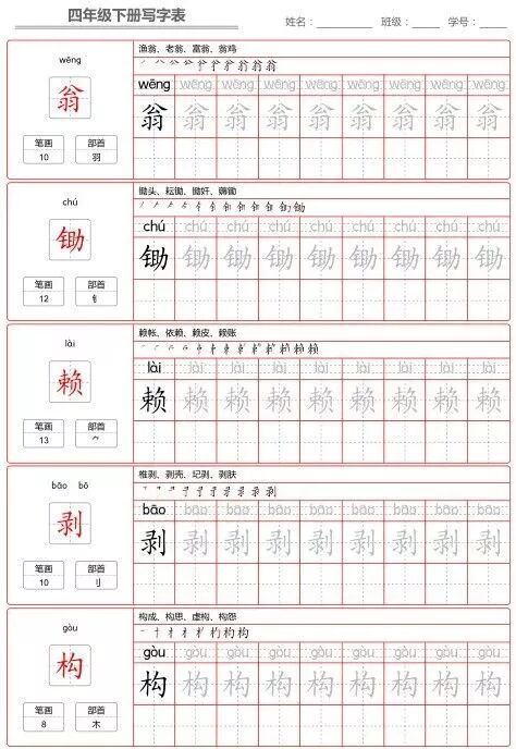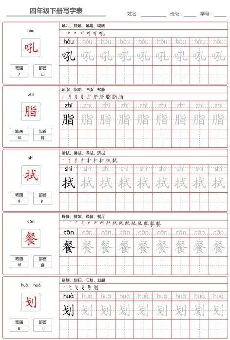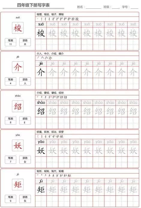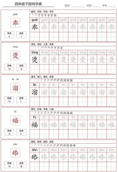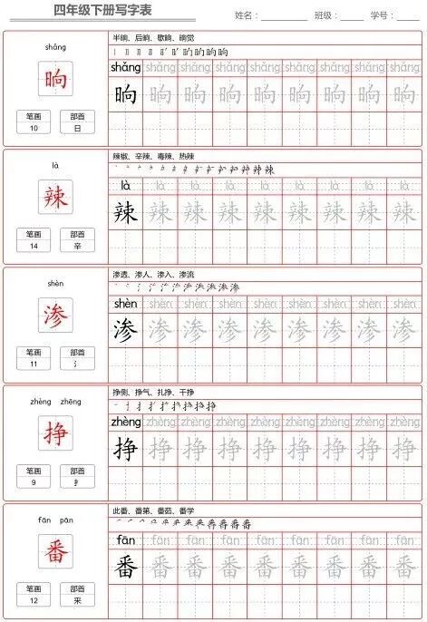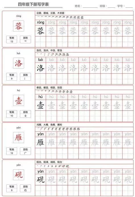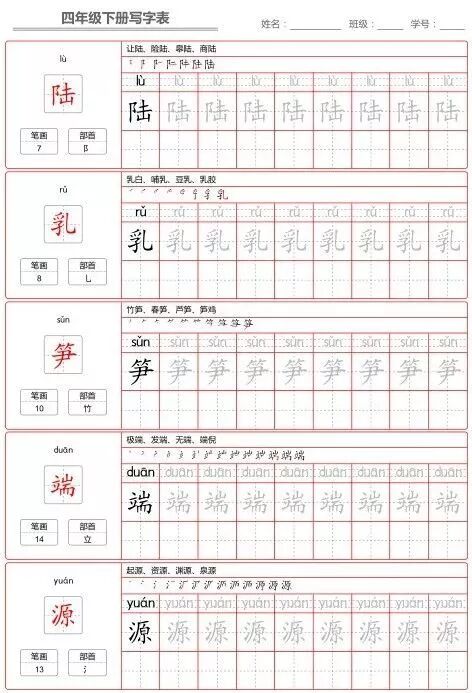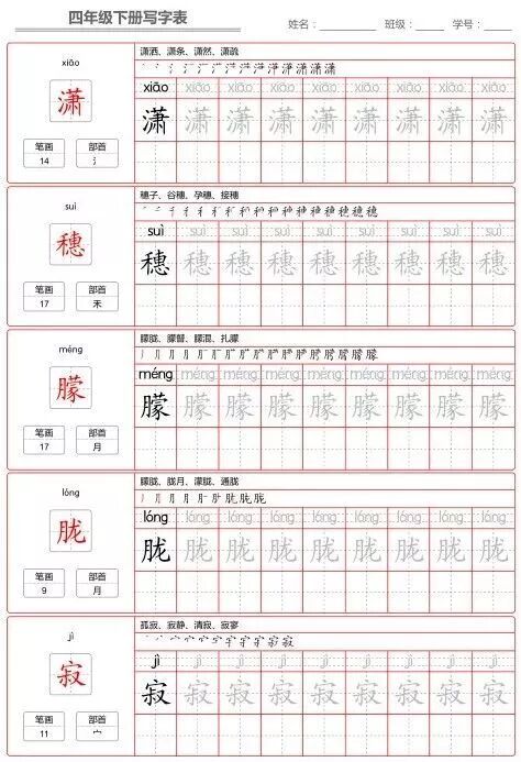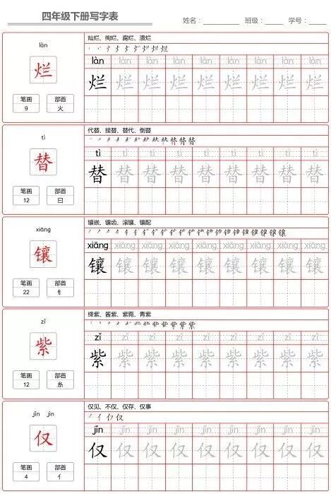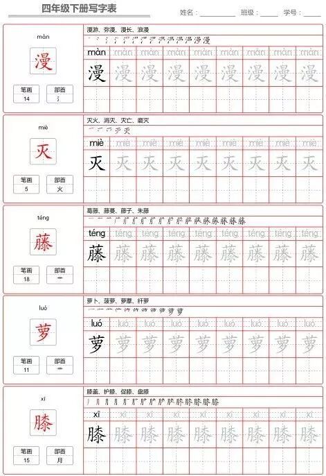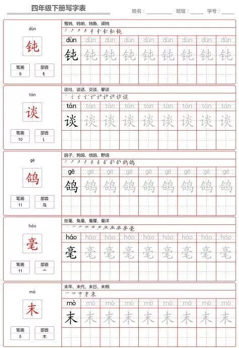 同步字帖┃部编版四年级语文下册:写字表练字贴