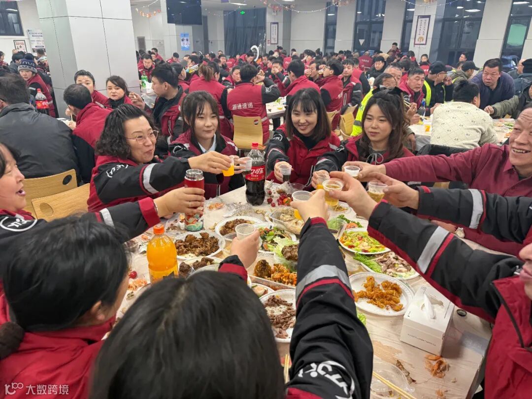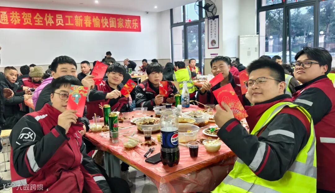 1月28日,农历除夕,圆通全网为春节值守员工组织了丰盛热闹的年夜饭及娱乐活动,发放新年好礼、举杯共祝新春,共同度过了一个欢庆、红火的除夕夜。