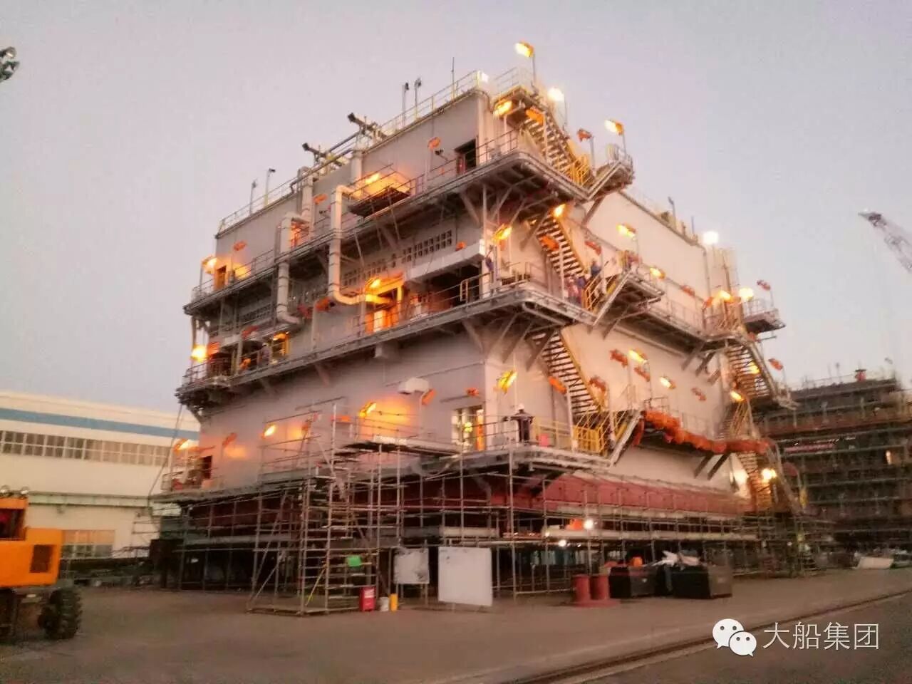 9月5日,大船船务为巴西石油公司建造的FPSO上部电气模块传来佳音,3号码头P68项目设备开始安装,2号码头P75项目M17模块亮灯。