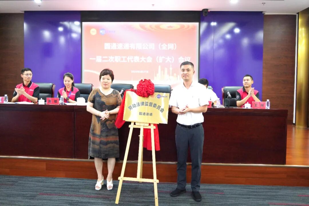 本次会议通过“线上+线下”相结合的形式顺利召开,共有211名圆通职工代表参会,其中一线职工代表168人,占代表总数的79.62%,充分保障了基层职工的知情权、参与权、表达权和监督权。上海市青浦区华新镇总工会副主席潘惠芳,圆通速递党委副书记、副总裁叶锋出席会议,并一同为“圆通工会劳动法律监督委员会”现场揭牌。