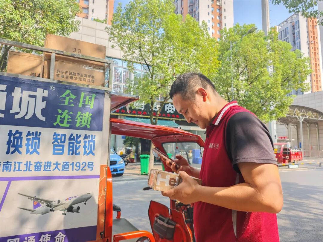 今年是90后小伙子杨其兹从事快递行业的第八个年头。作为圆通重庆潼南分公司的一名业务员,他从最开始只送小件,到后来的大小件都送;从只送一个小区到现在潼南县城每个街道都有他的脚步身影。