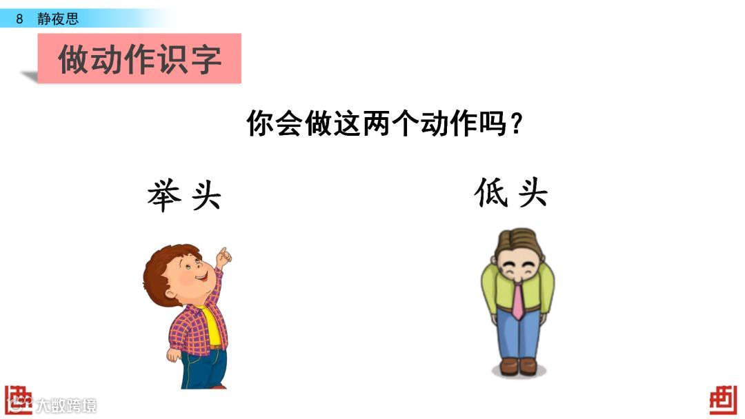 反义词: 静--( ) 举头--( ) 明亮--( )