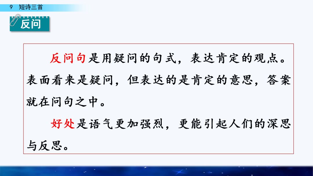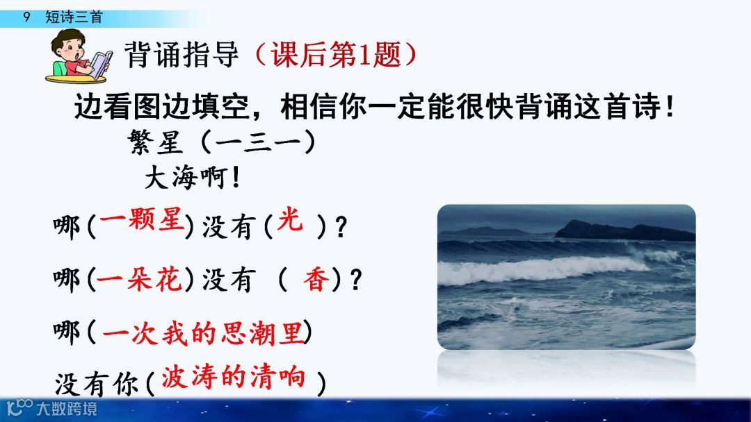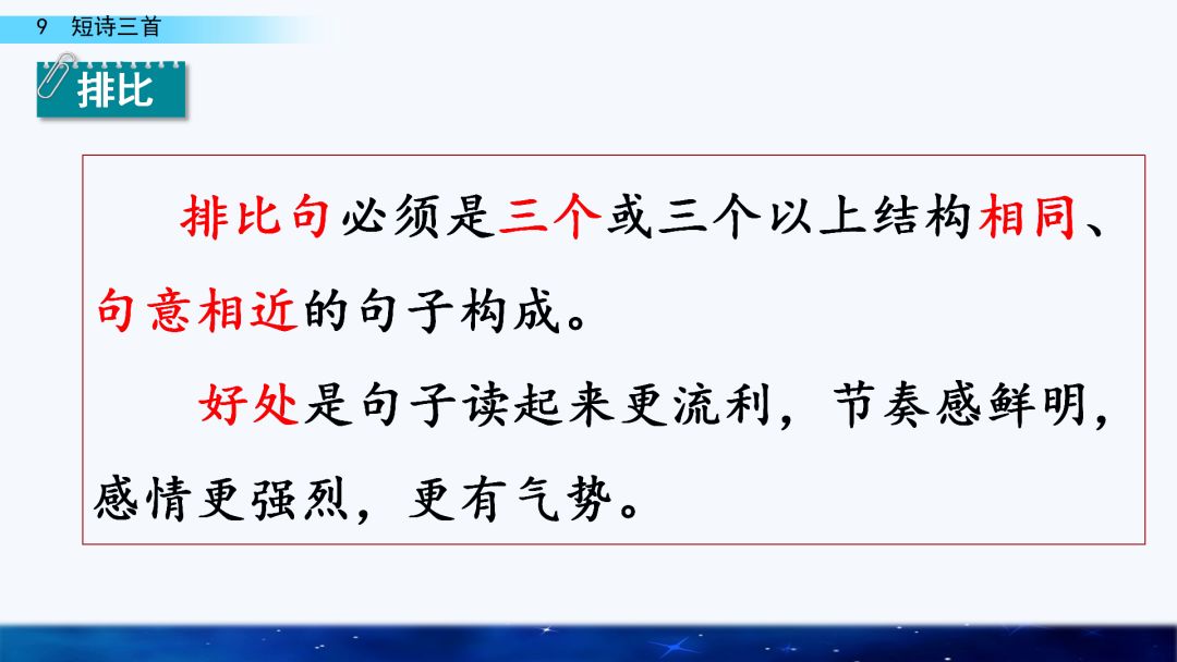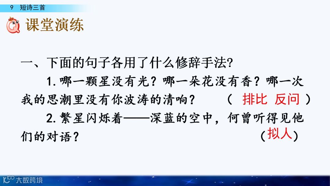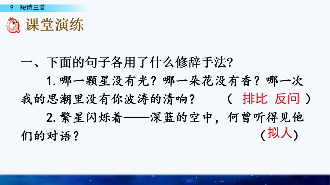 《繁星(一三一)》:用排比、反问的形式,表达了诗人对波澜壮阔的大海的赞颂。
