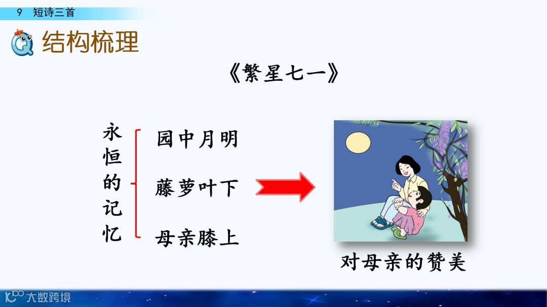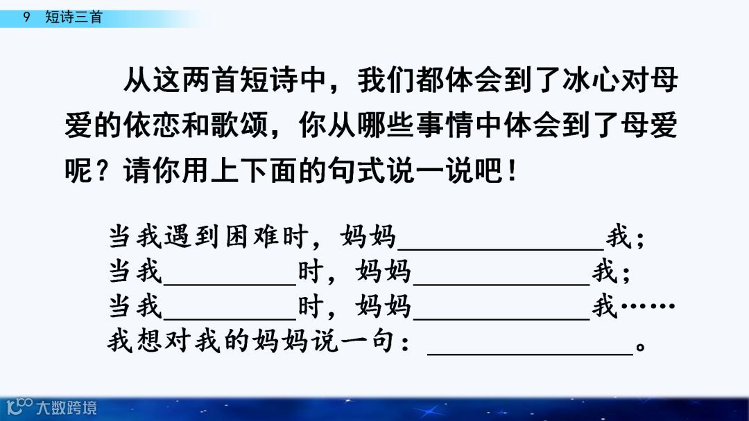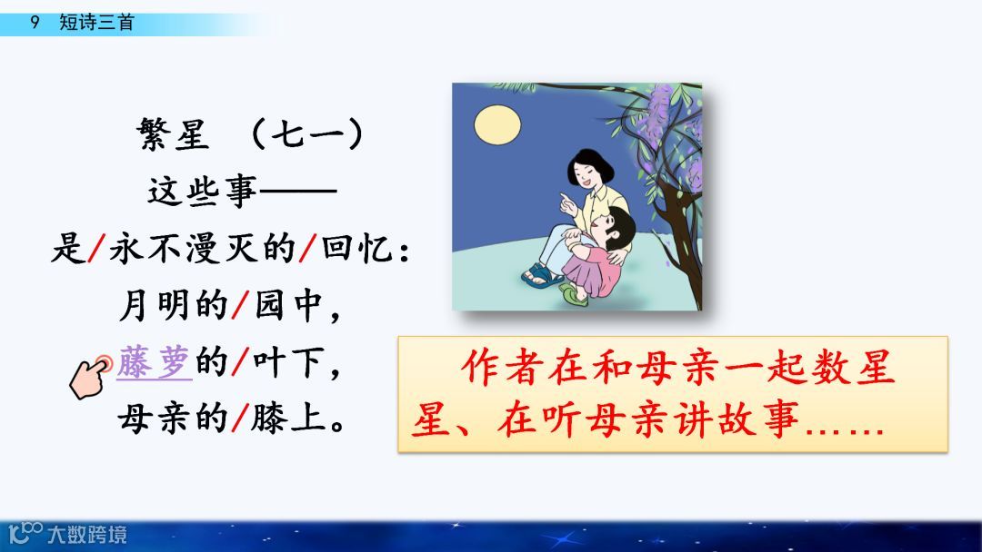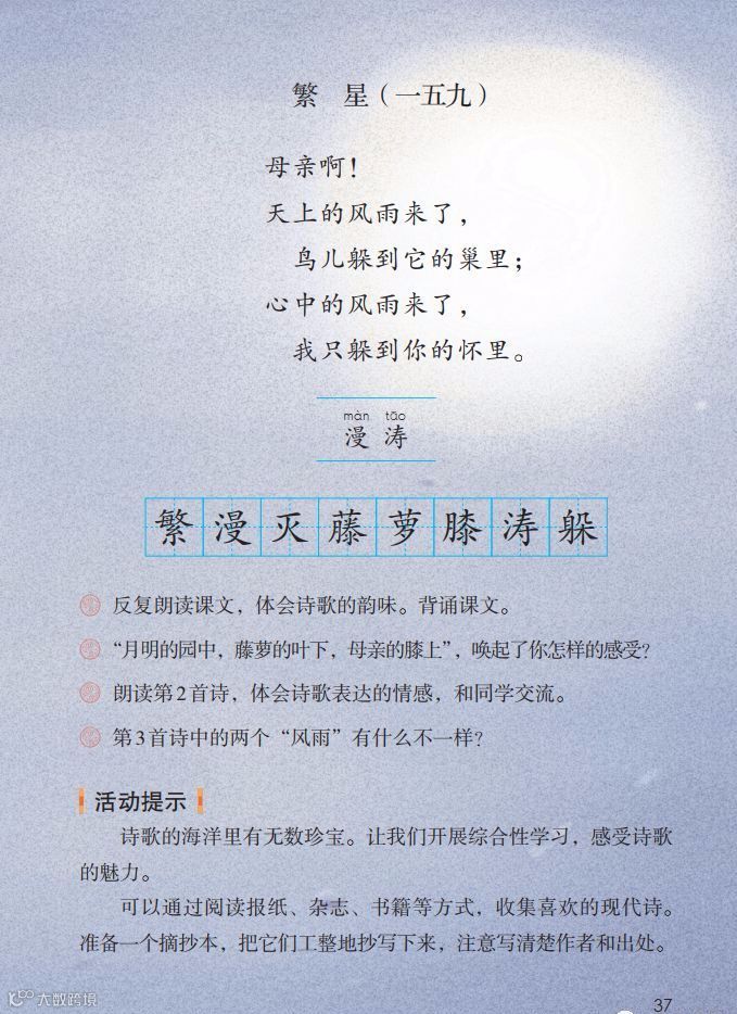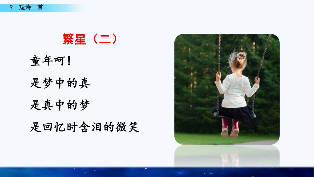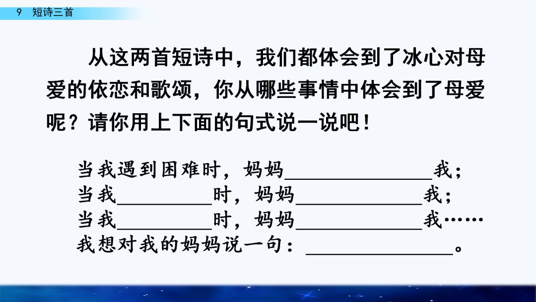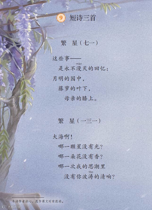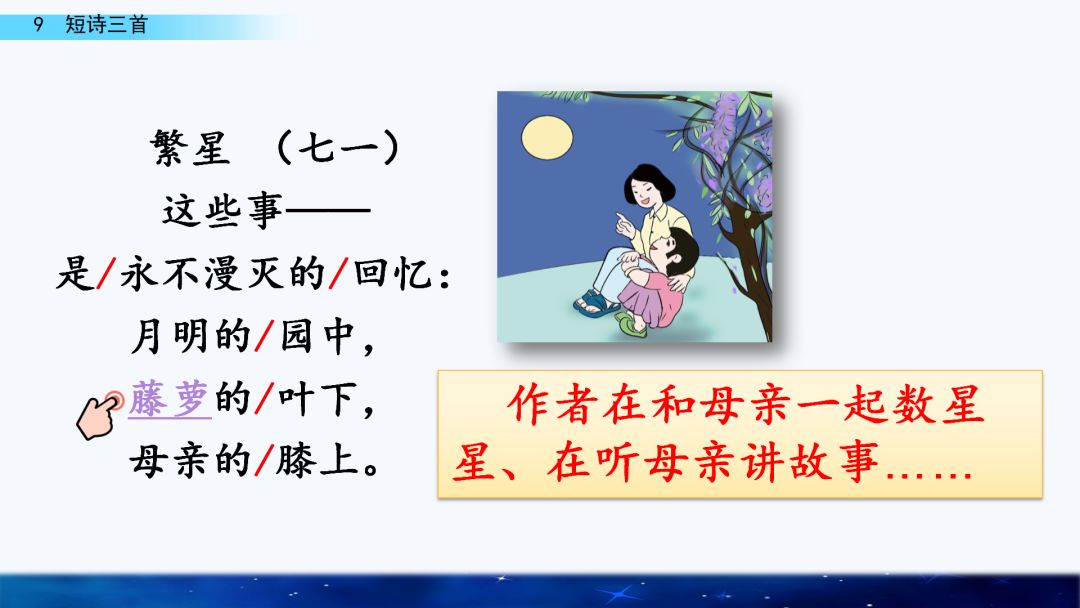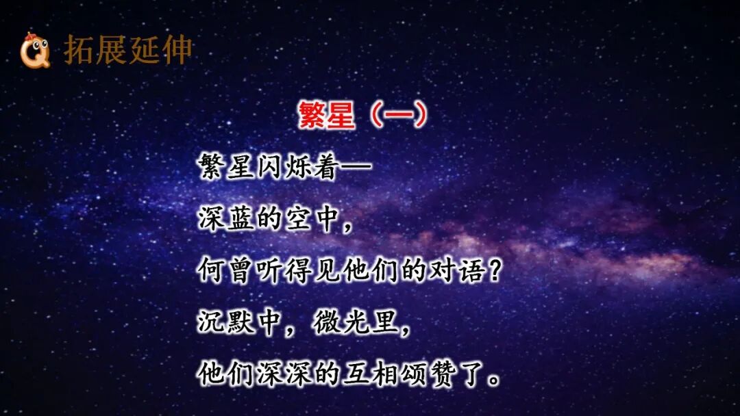 《繁星(七一)》:通过回忆小时候的事,歌颂了童真和母爱。