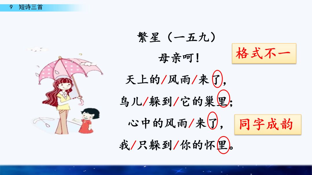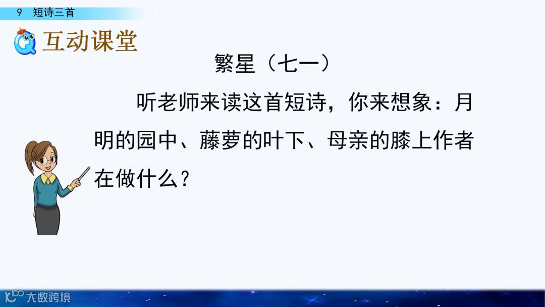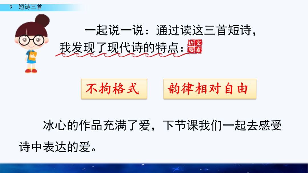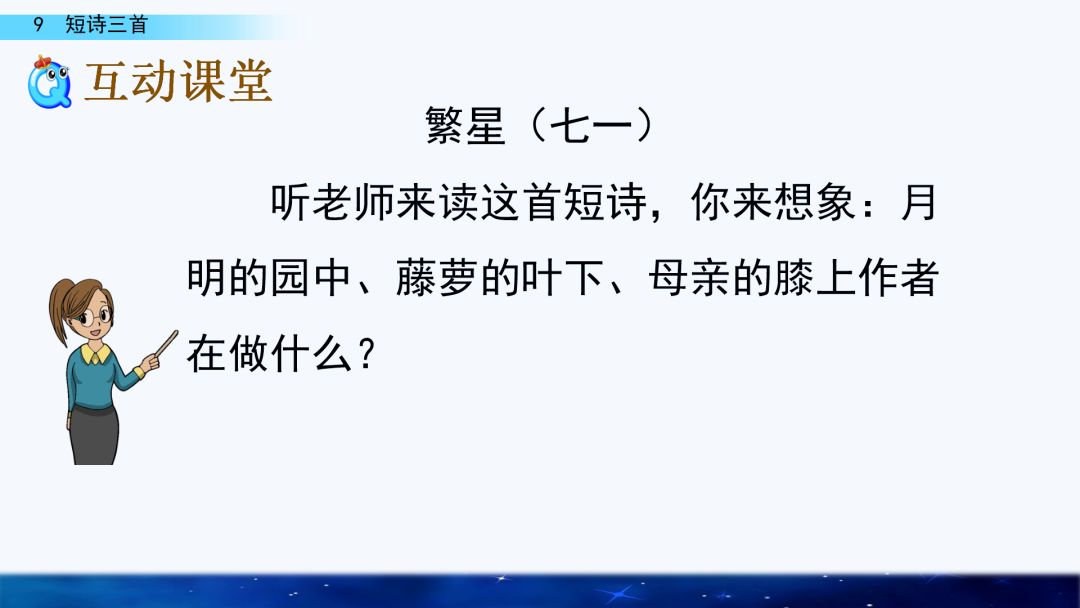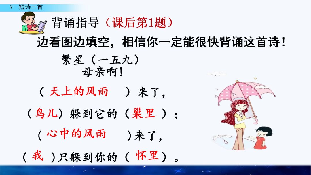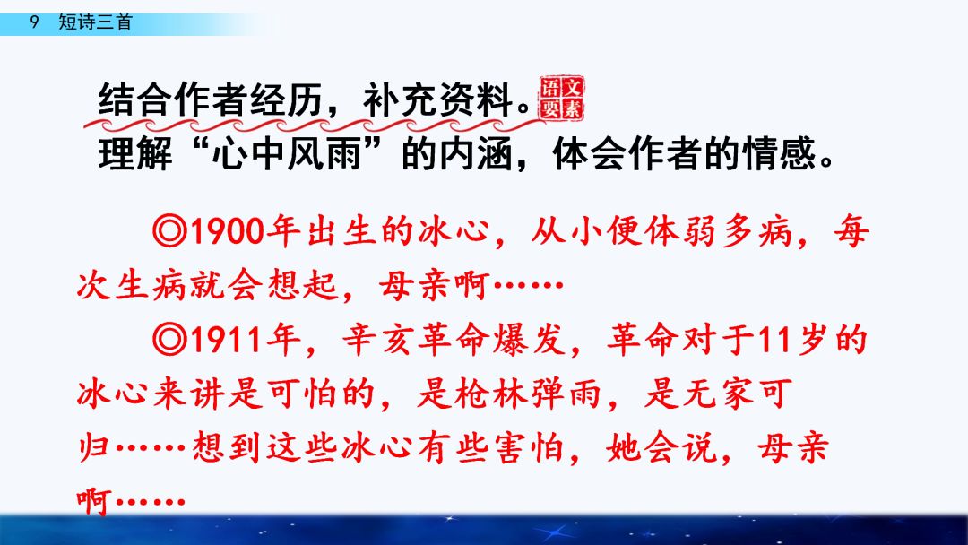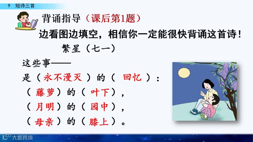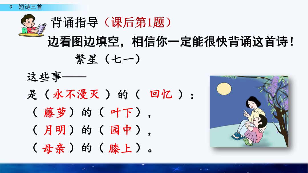 《繁星(七一)》:通过回忆小时候的事,歌颂了童真和母爱。
