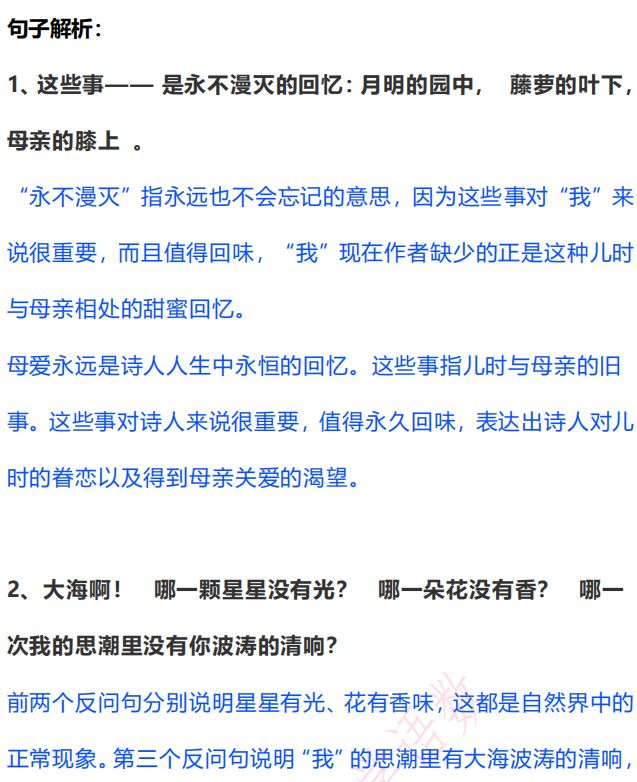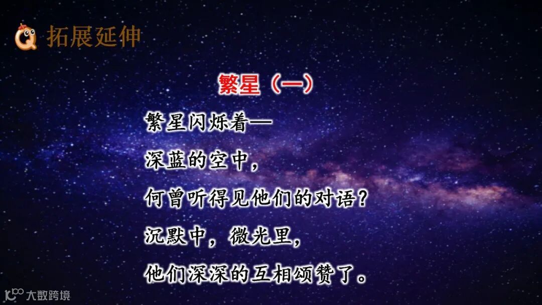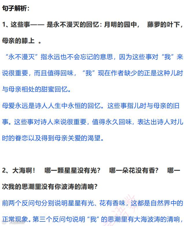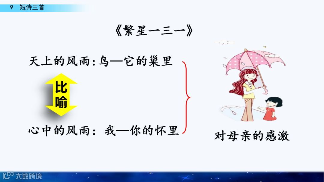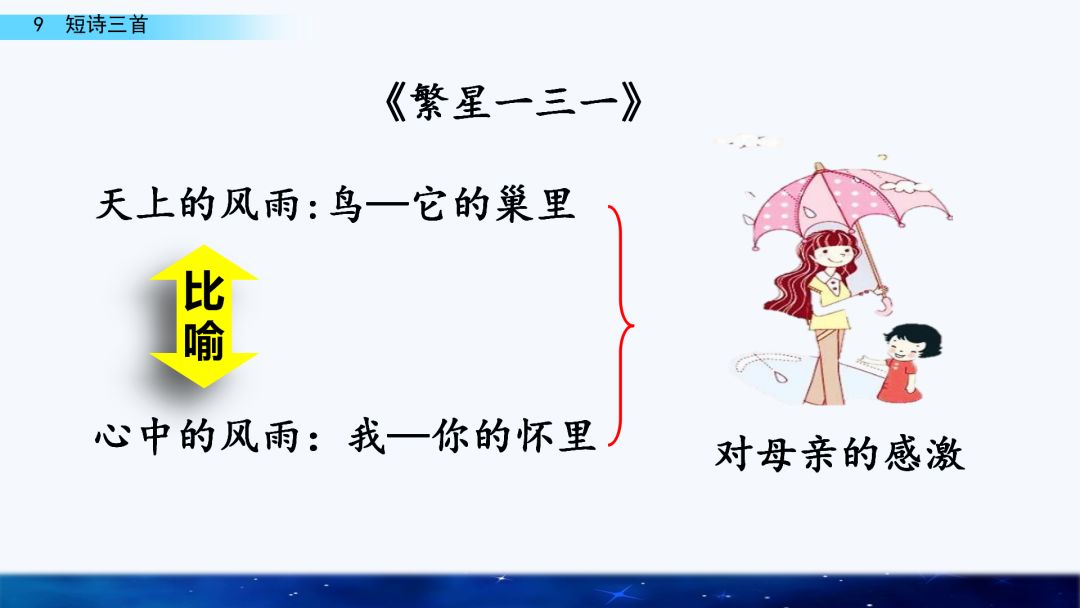 《繁星(一五九)》:运用类比、联想和比喻,表达了对母爱的深情赞颂。