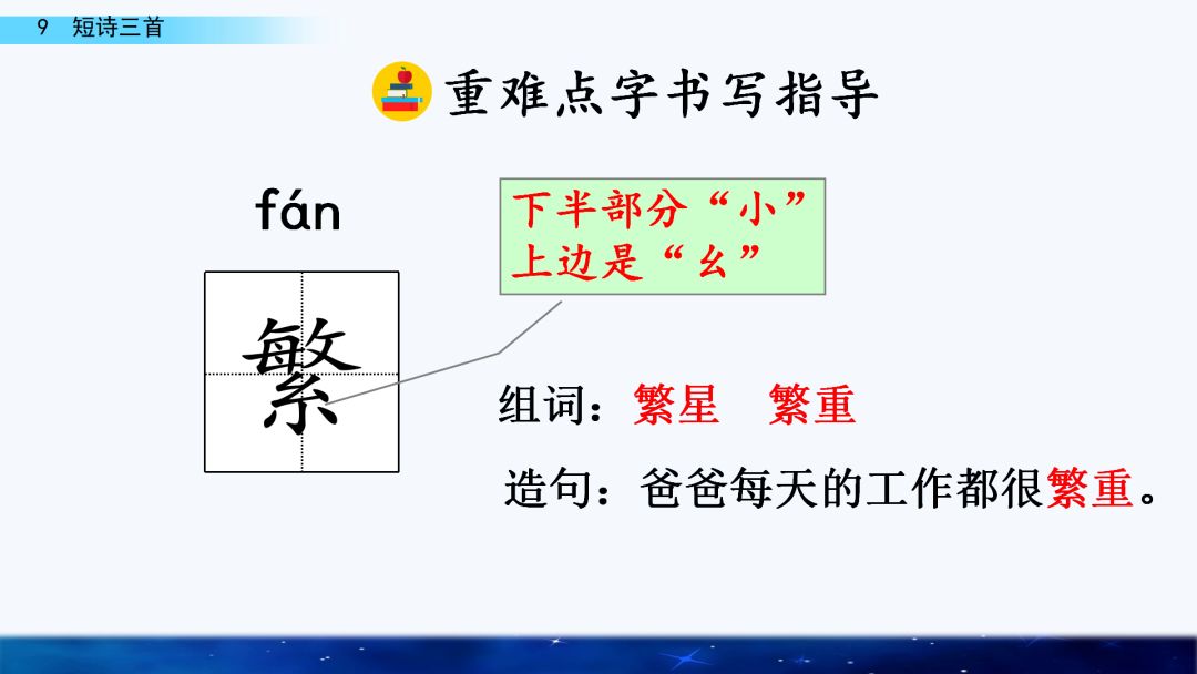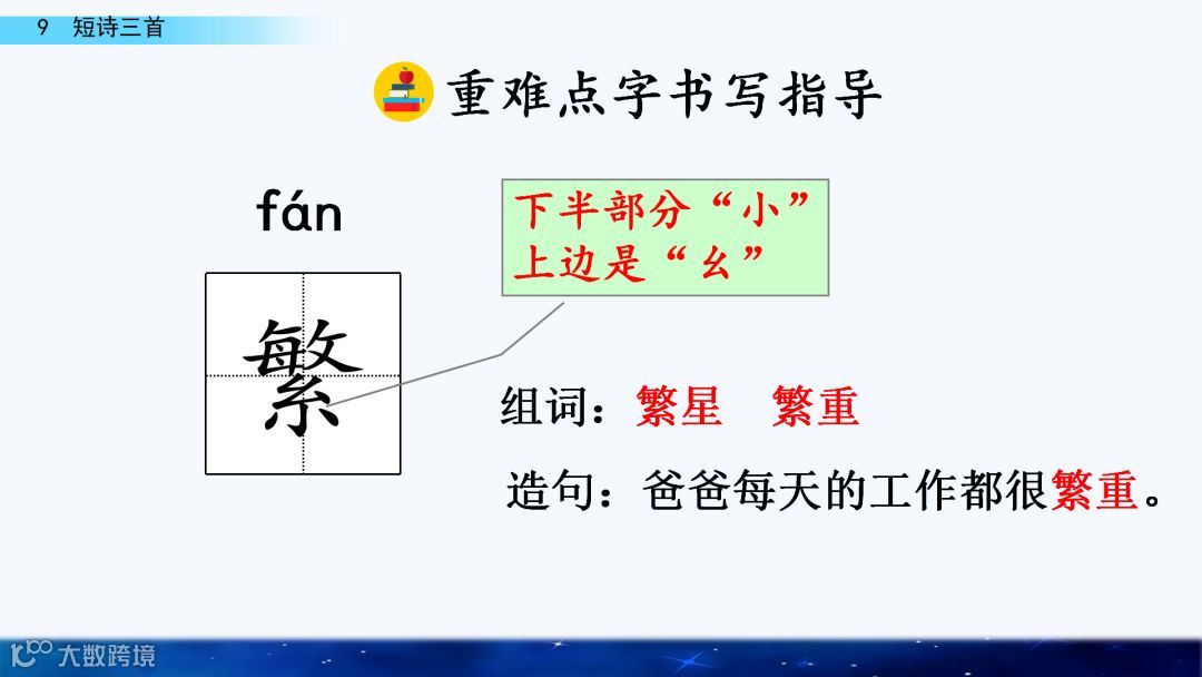 繁:繁星 繁密 繁多 繁杂 删繁就简