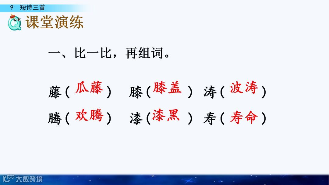 藤(藤蔓)腾(奔腾) 萝(萝卜)箩(箩筐)