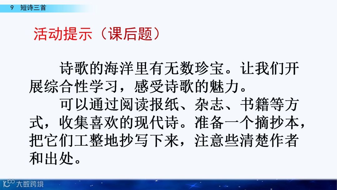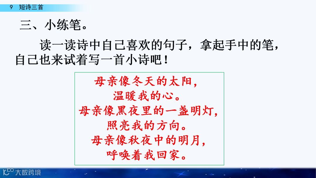 3、朗读第2首诗,体会诗人表达的情感,和同学交流。