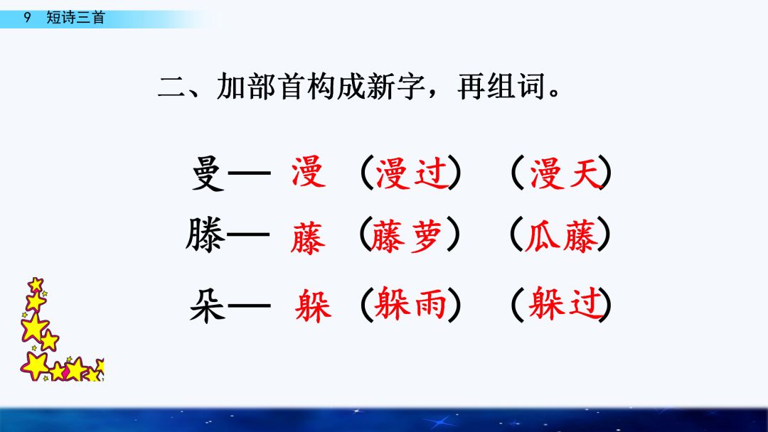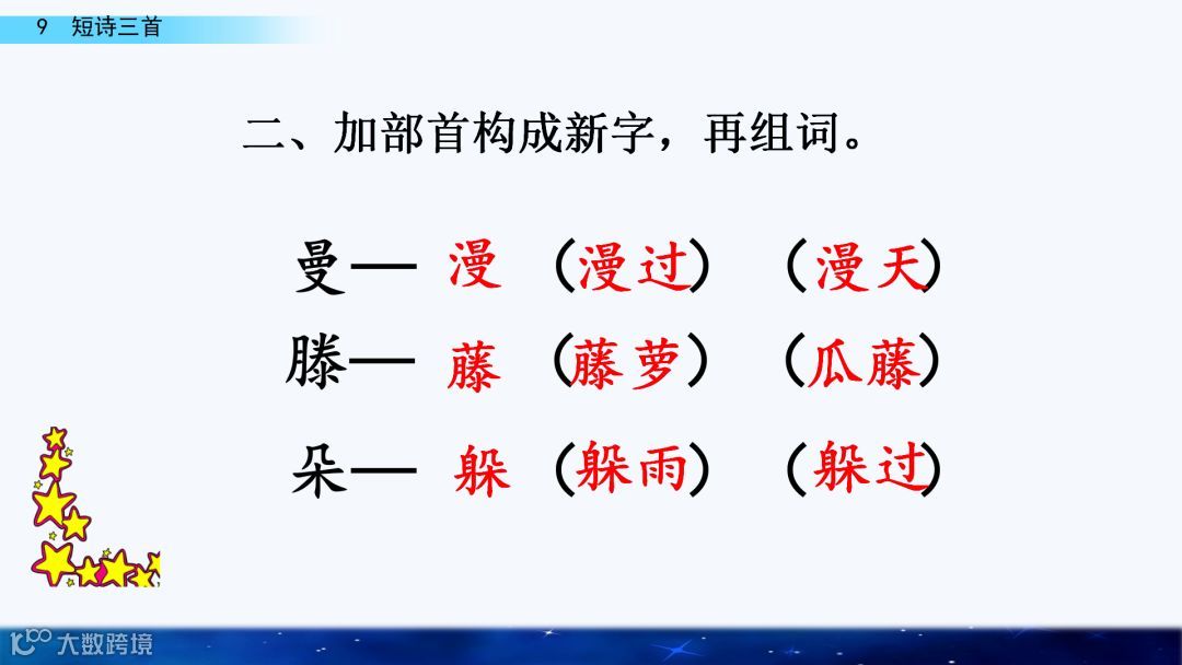 一、漫(漫步) 藤(藤萝) 萝(萝卜) 膝(膝盖)