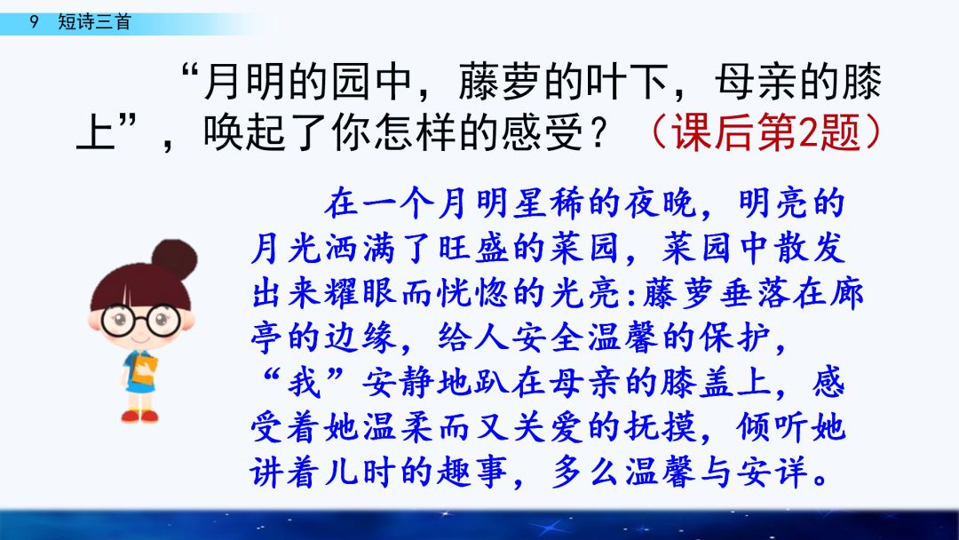 2、“月明的园中,藤萝的叶下,母亲的膝上”唤起了你怎样的感受?