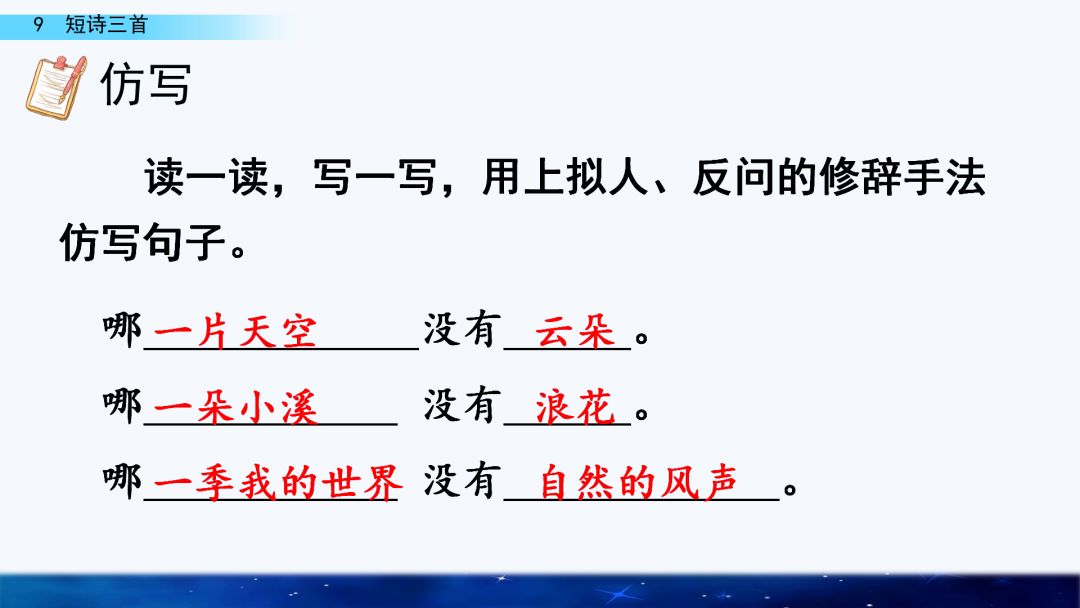 三、1.哪一颗星都有光。2.哪一朵花都有香。