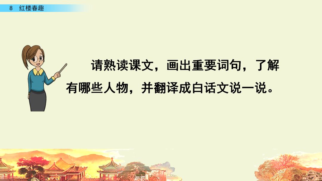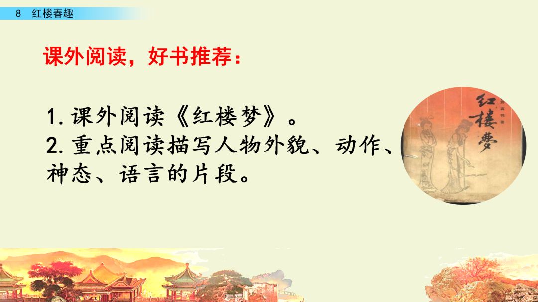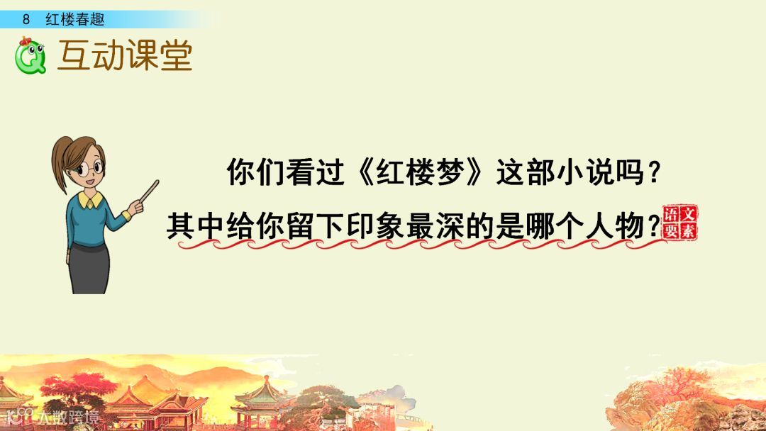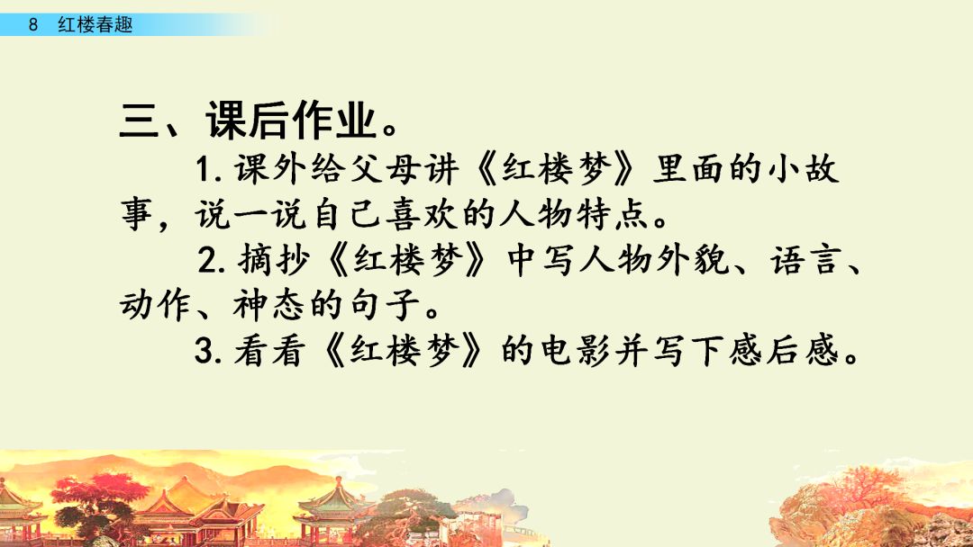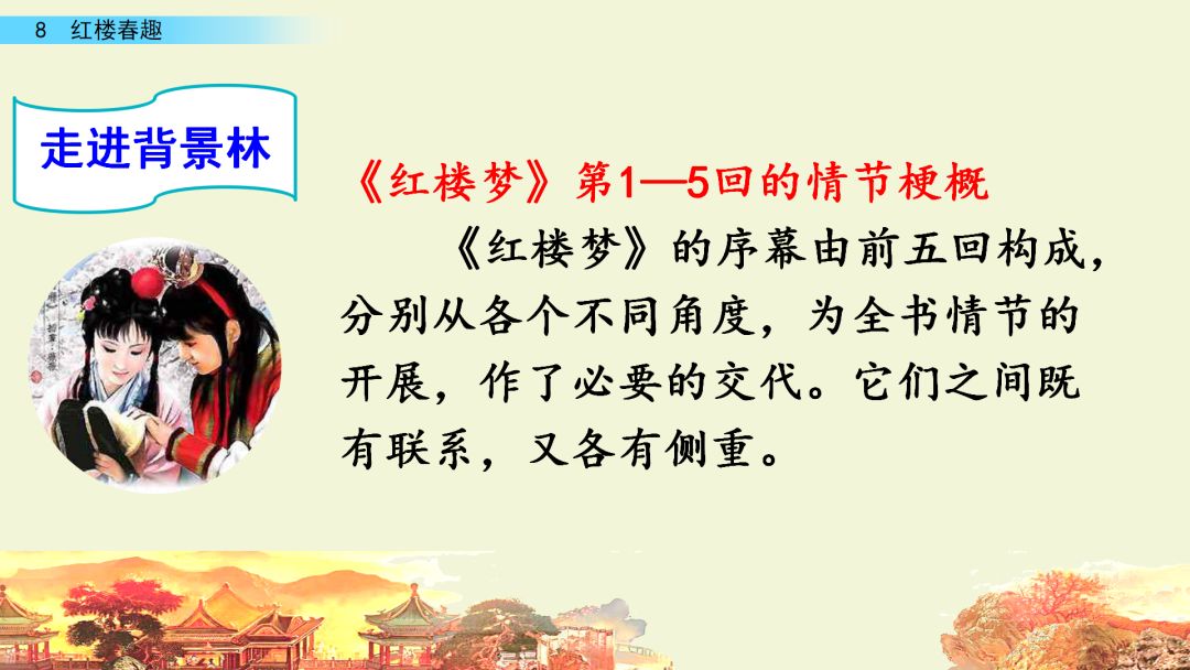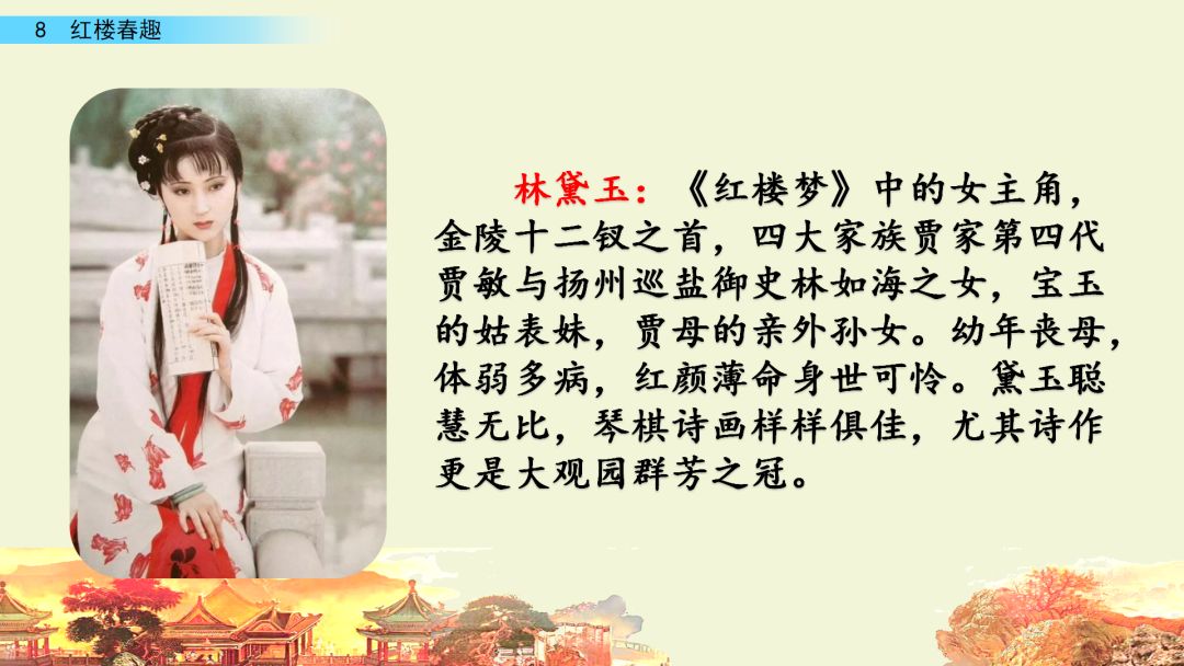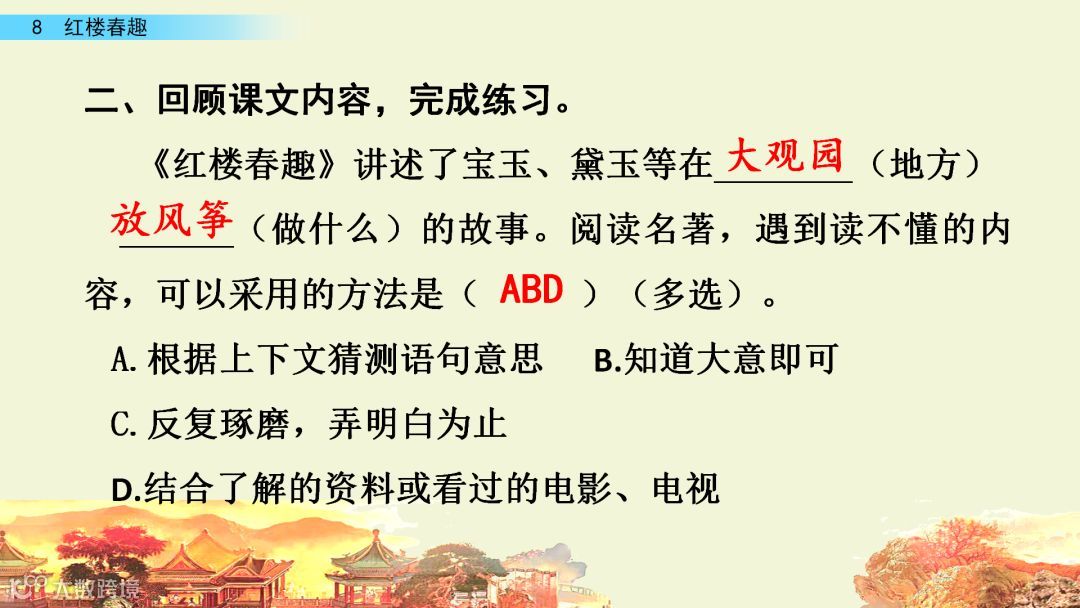 (1)黛玉提议放风筝,小丫头们急忙七手八脚地去拿风筝,准备放风筝的工具。