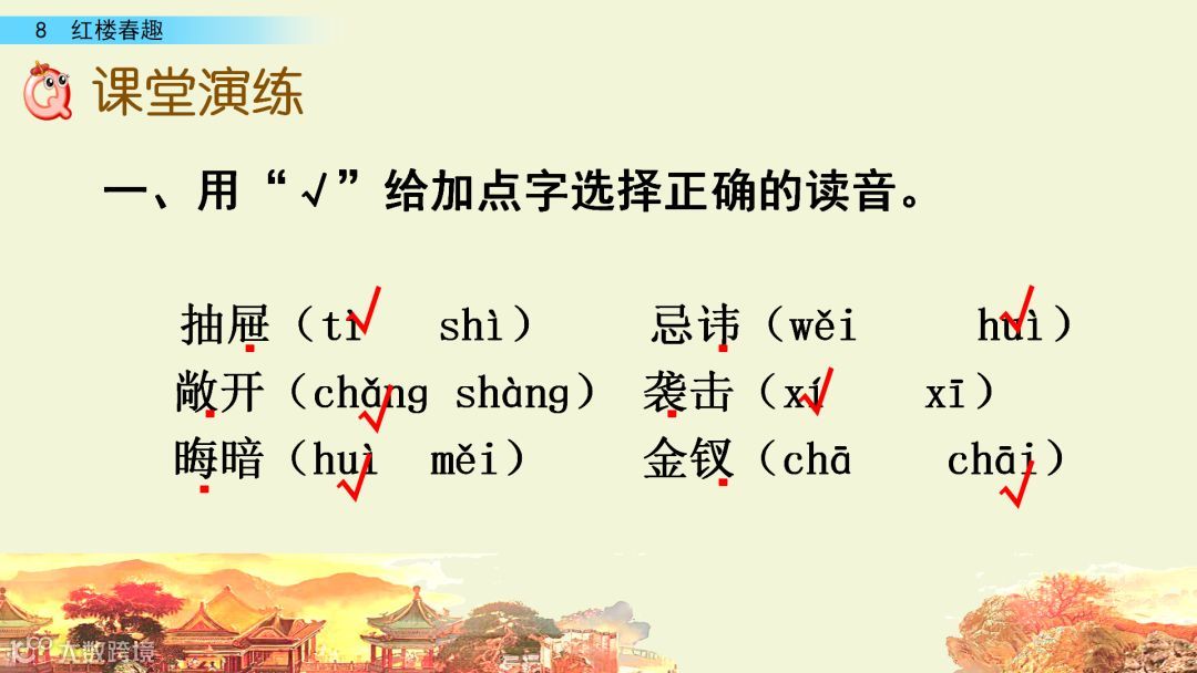 2.众丫鬟笑道:“好一个齐整风筝,不知是谁家的,断了绳,拿下他来。” ( )