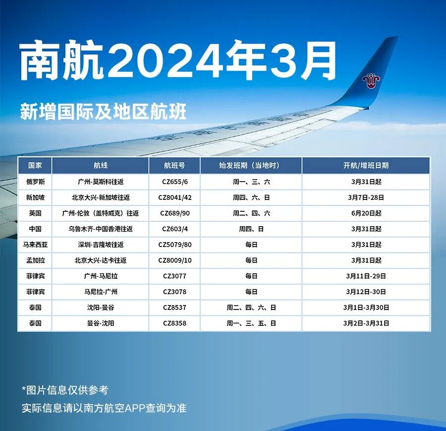 南方航空3月国际及地区新增航班计划,北京大兴=利雅得、德黑兰新开航