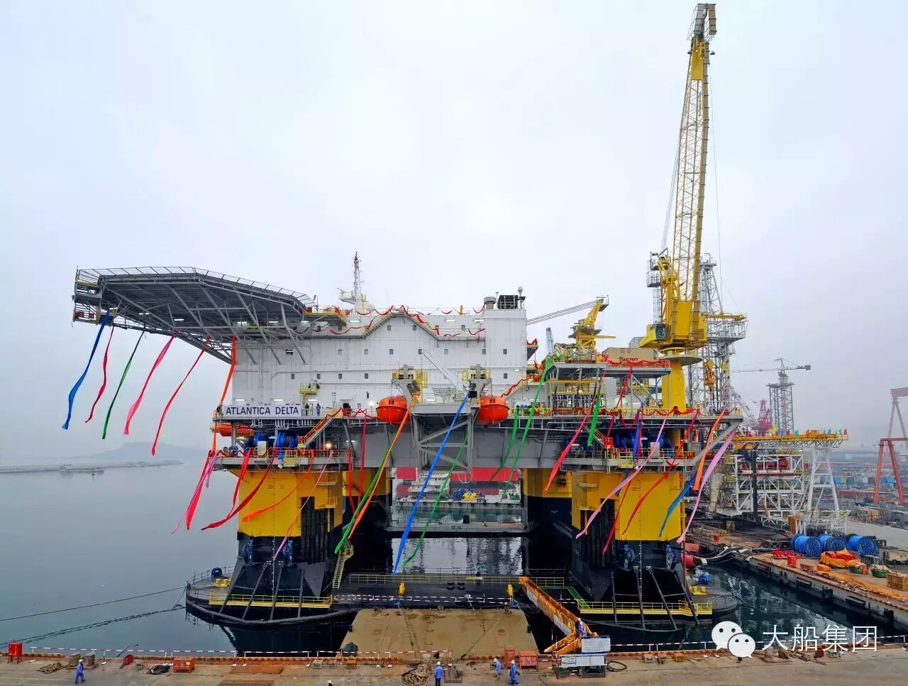 12月11日,大船集团海工公司为Atlantica Tender Drilling公司建造的BT3500-2号半潜式钻井支持平台“Atlantica Delta”号顺利交付船东。这是大船集团海工公司为该公司建造的第二座同类型平台,其总体技术达到国内领先、国际先进水平,赢得船东的青睐。交付后将于近日前往刚果Moho-Nord油田执行道达尔公司的租约。