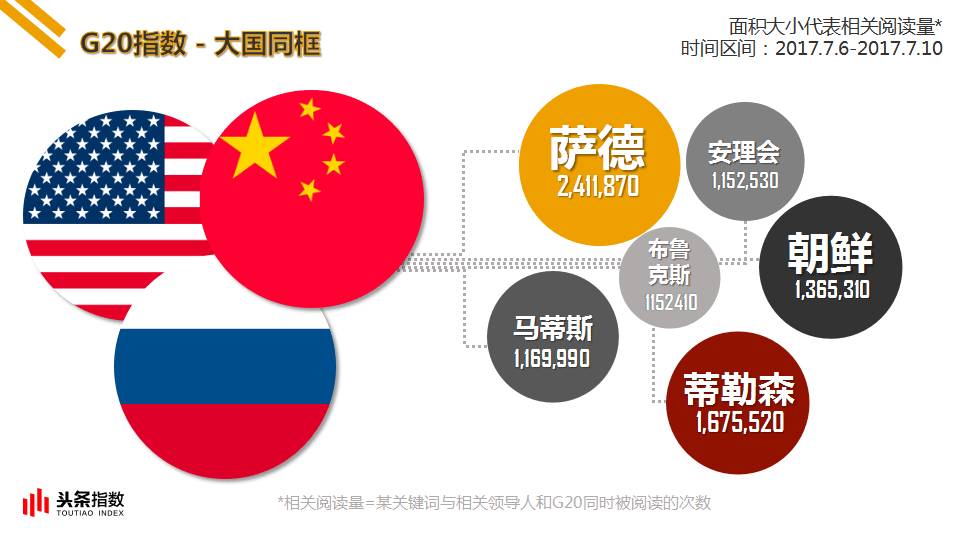 G20峰会被许多媒体认为是世界主要经济体的领导人齐聚在一个房间内讨论世界面临的经济挑战的唯一机会。那么在这两天内,当大国相遇,哪些议题更受关注?领导人之间又发生了何种互动?头条指数用阅读数据为您解读G20之“大国同框”。