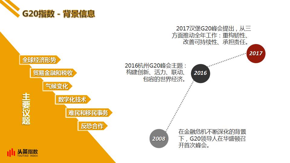 本次峰会围绕着全球经济形势、气候变化、难民问题等热点议题展开。据《金融时报》报道称,G20国家经济总量占全球GDP的90%,贸易规模占全球贸易总额的80%,因而G20峰会不仅是各界感知全球经济走向的“风向标”,更是洞悉全球政策变动的“窗口”。