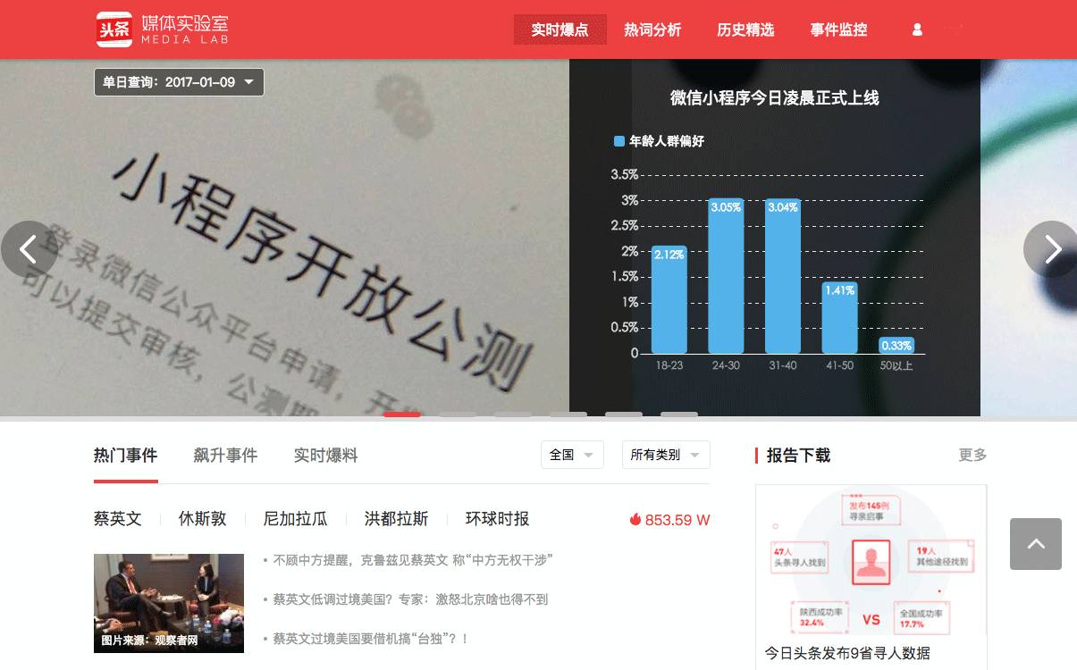 媒体实验室《今日头条 2016 年度手机报告》已经上线,更多内容,登陆媒体实验室下载报告。