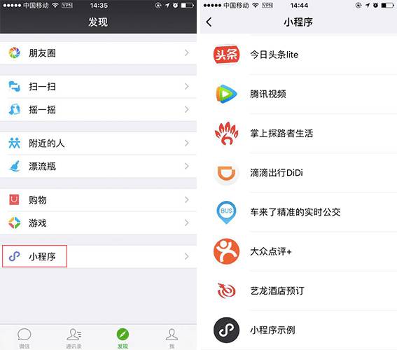 (左图为小程序的入口,右图为实验君体验的小程序)