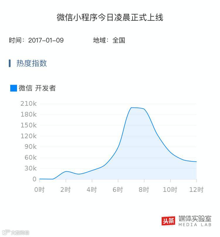 点击之后,发现小程序的热度指数从今天凌晨开始就一直在往上升,直到早上 8 点以后,才开始有所下降。可见小程序的热度。