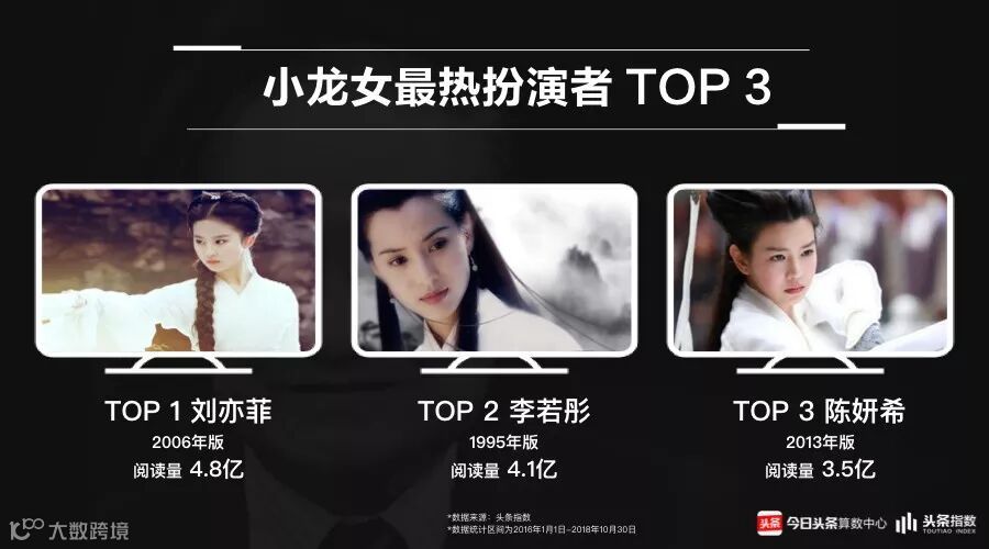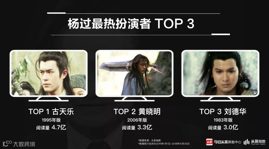 这些经典角色随着影视剧的翻拍被不断解读、重构和丰富,在杨过的所有扮演者中,古天乐成为人们心中最热门的角色代表,女演员刘亦菲则成为小龙女最受关注的扮相,比李若彤版的小龙女阅读量高出7000万。