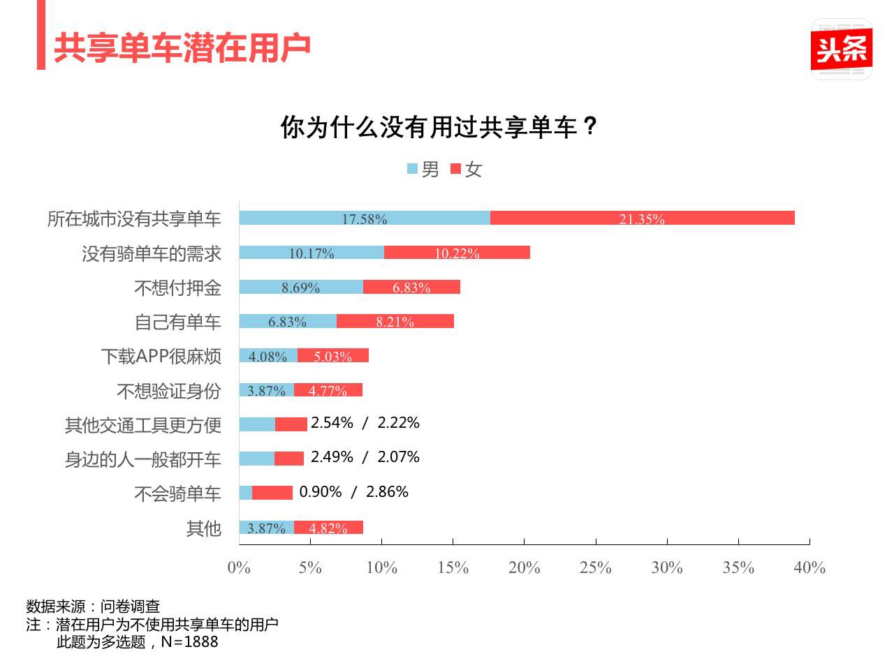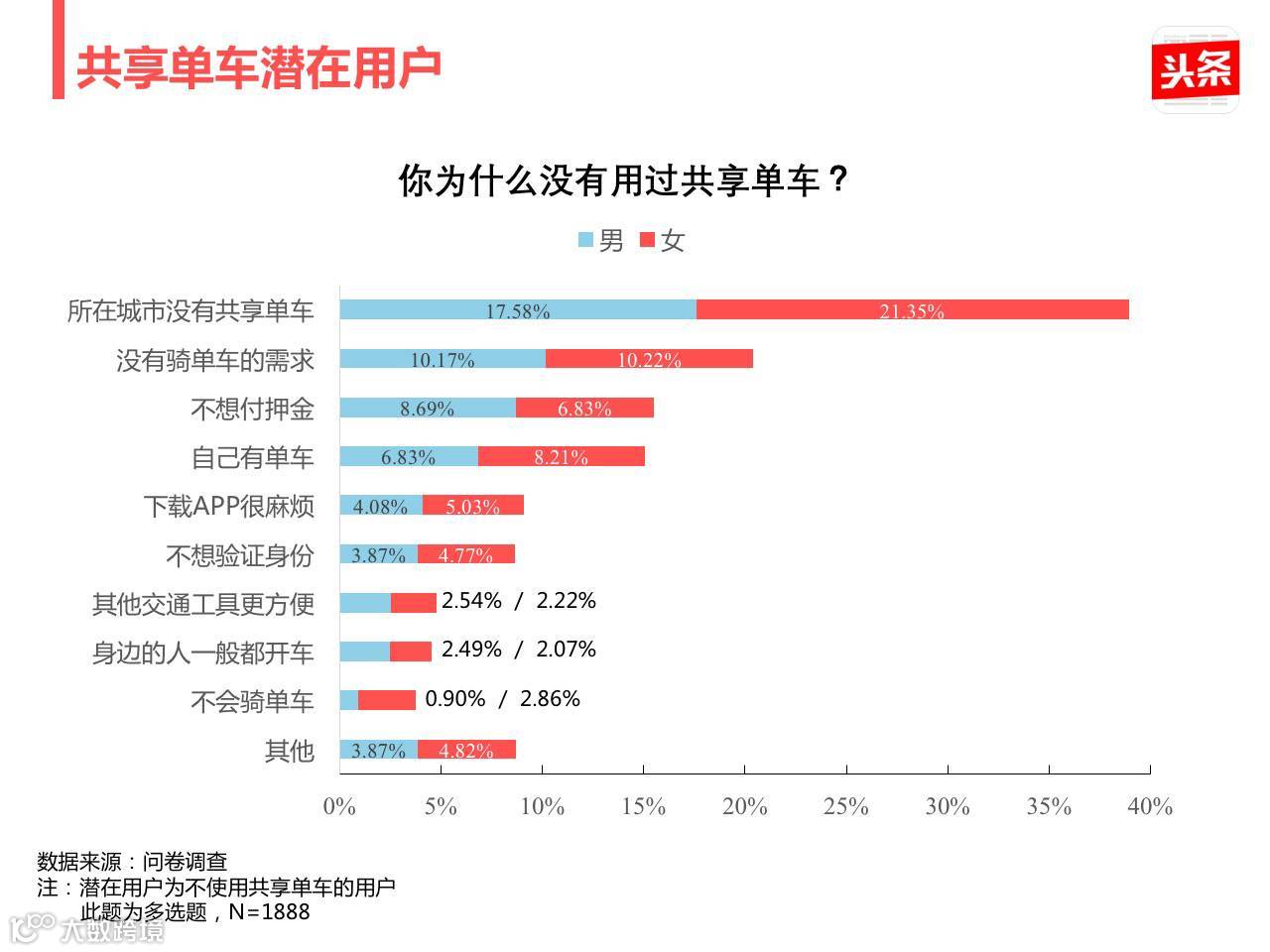 对于女性用户来说,不会骑单车,也是没有用过共享单车的重要原因。