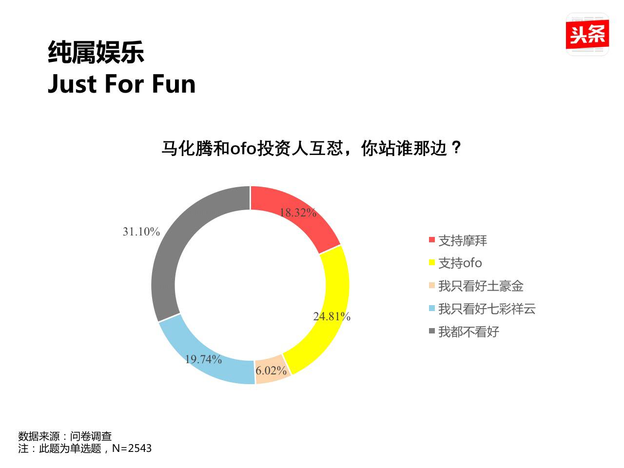 我们邀请头条2543名用户来做了一个调查,ofo以24.81%的占比,赢得了群众的支持~~